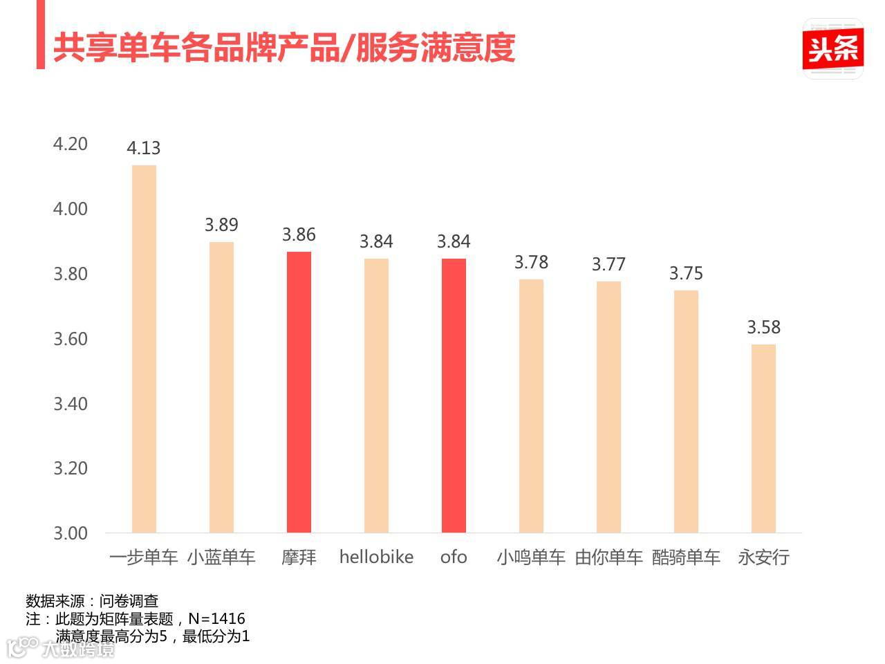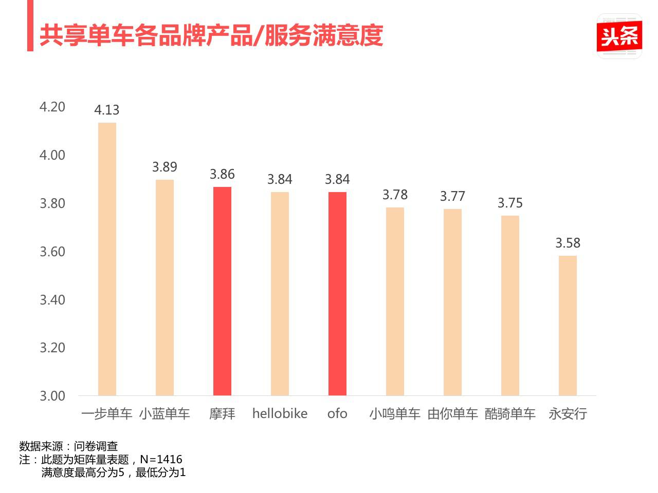 虽然,ofo拥有更多对其未来看好的支持者。可是问卷数据显示,受访者对摩拜单车的产品/服务满意度高于ofo。虽然,第一被那个叫一步单车的抢走了。