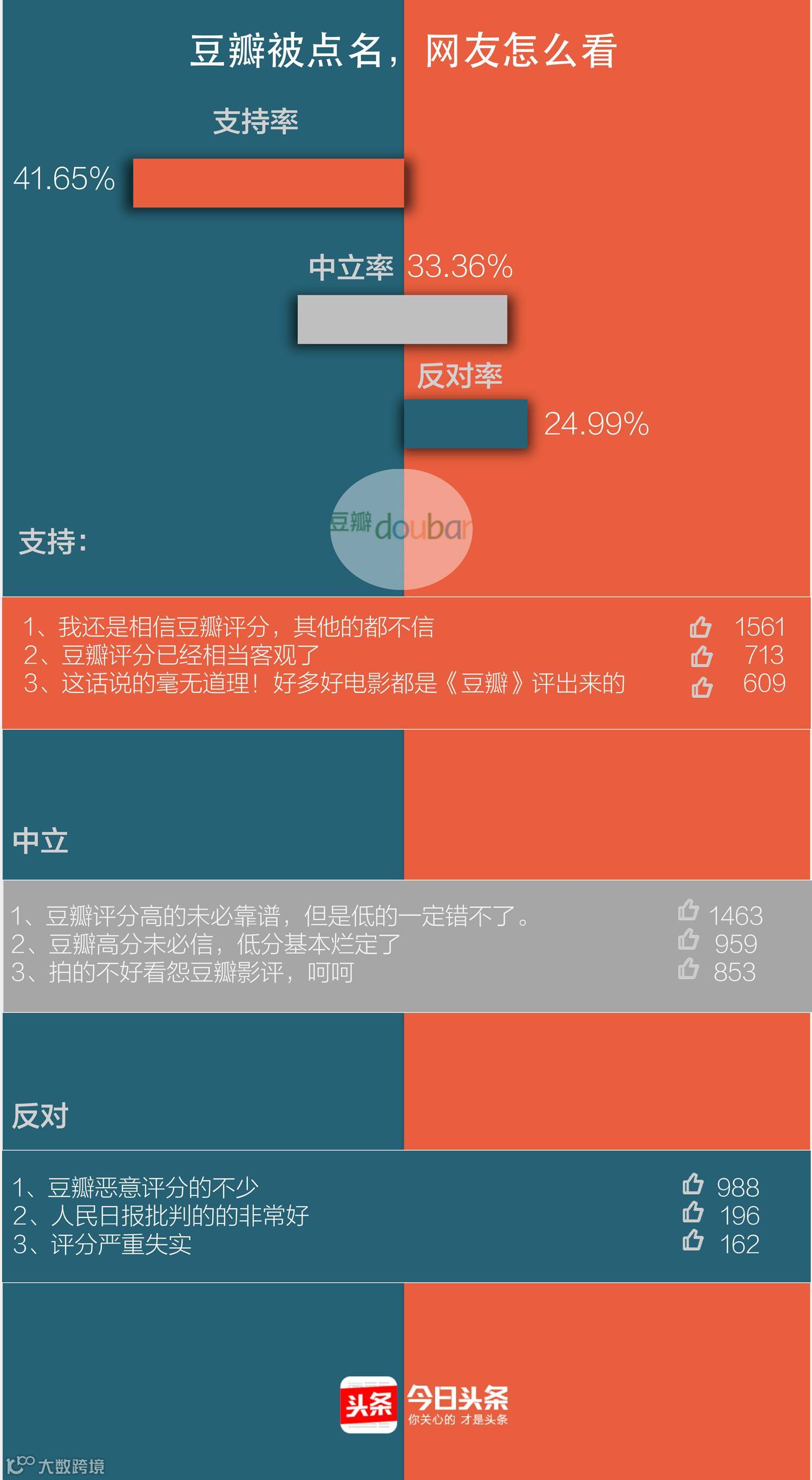 根据媒体实验室的评论数据,网友似乎站在了豆瓣这边,对于电影局及人民日报的批评并不买账。