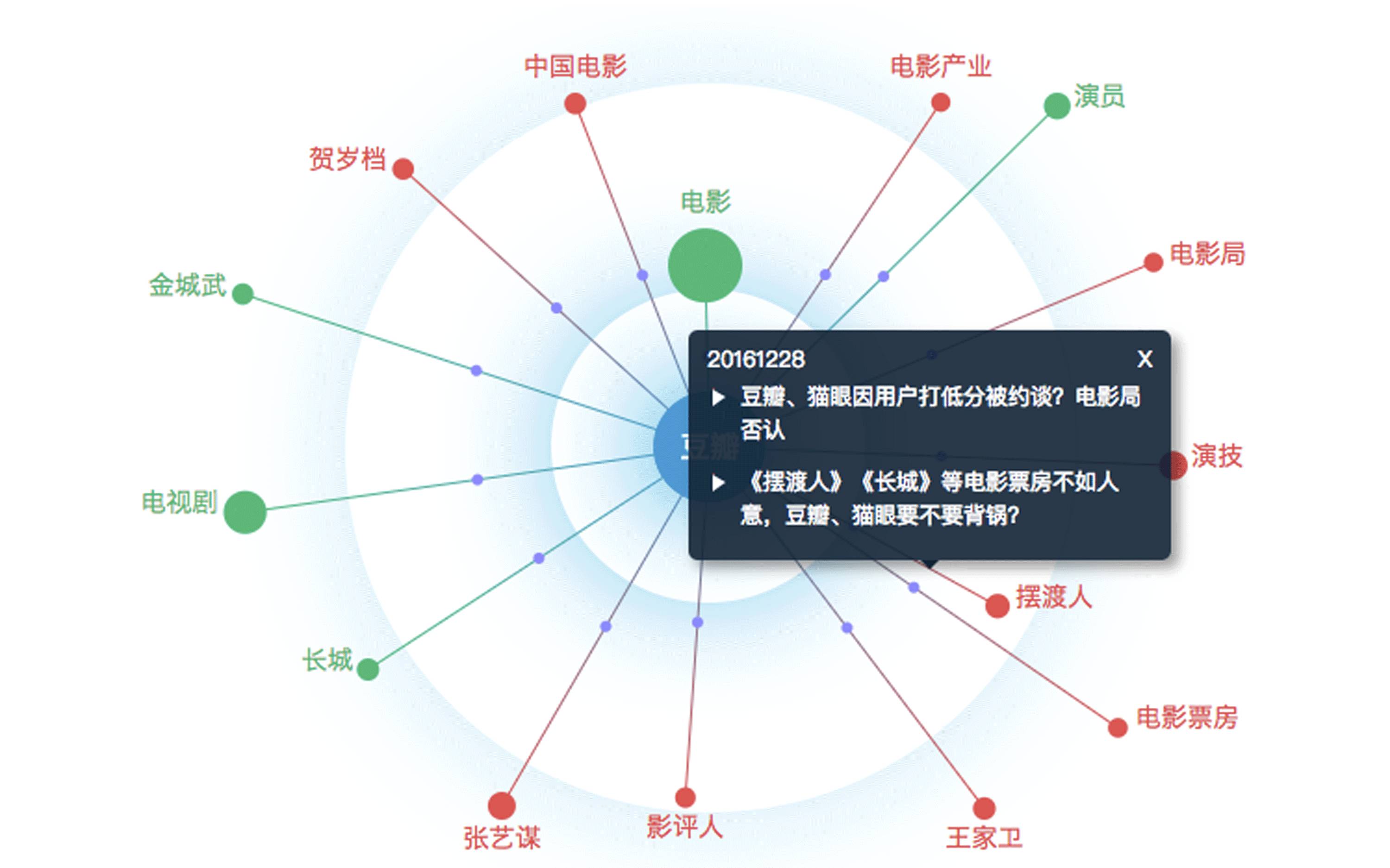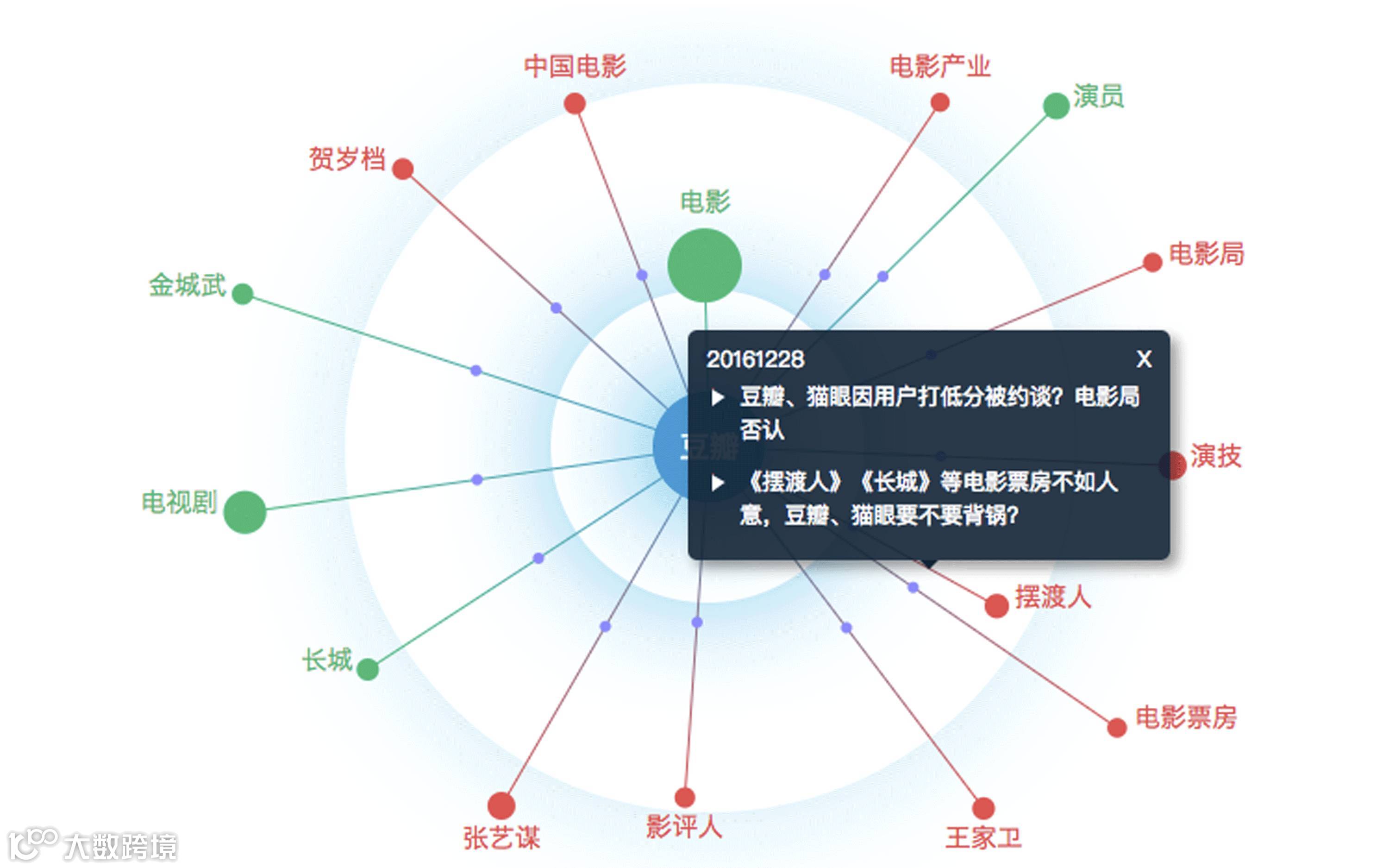 到了12月28日,豆瓣的关键词里就出现了“电影局”、“电影产业”、“影评人”、“票房”等词,而相关新闻指向了“被点名”事件。