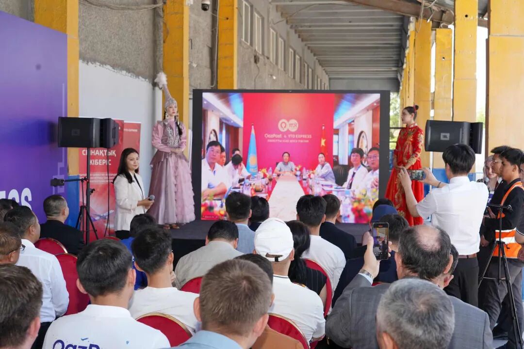 当地时间上午,圆通和哈国邮在圆通阿拉木图集运中心举行中哈跨境快递物流业务开业典礼。圆通速递董事长喻渭蛟在线致辞,哈萨克斯坦国家邮政董事会主席阿泽尔·扎纳索娃、圆通速递总裁潘水苗、圆通国际总裁周建,以及当地华人商会及企业客户等参与典礼,共同见证来自中国的跨境包裹装车,并为业务正式开通剪彩。