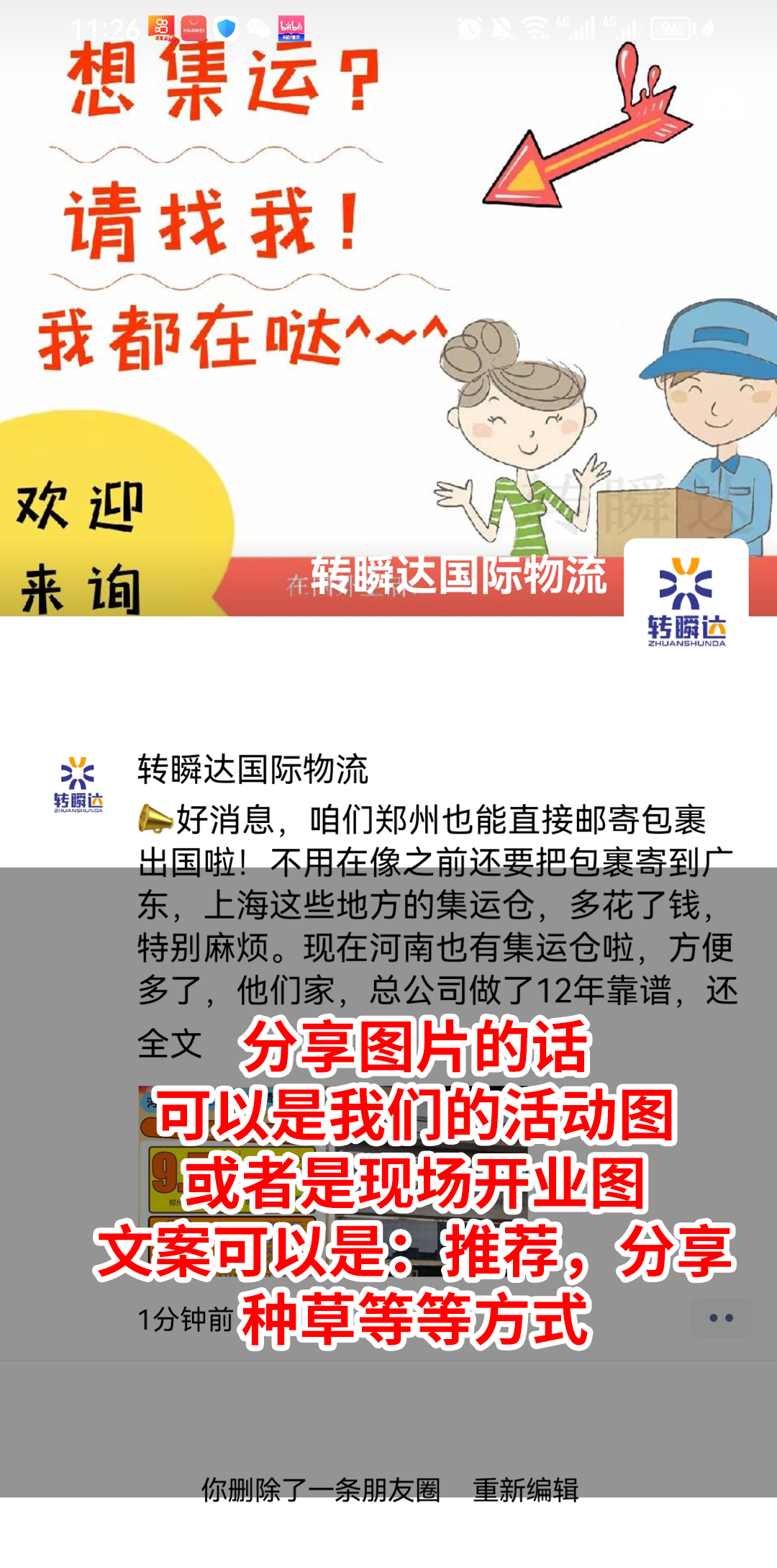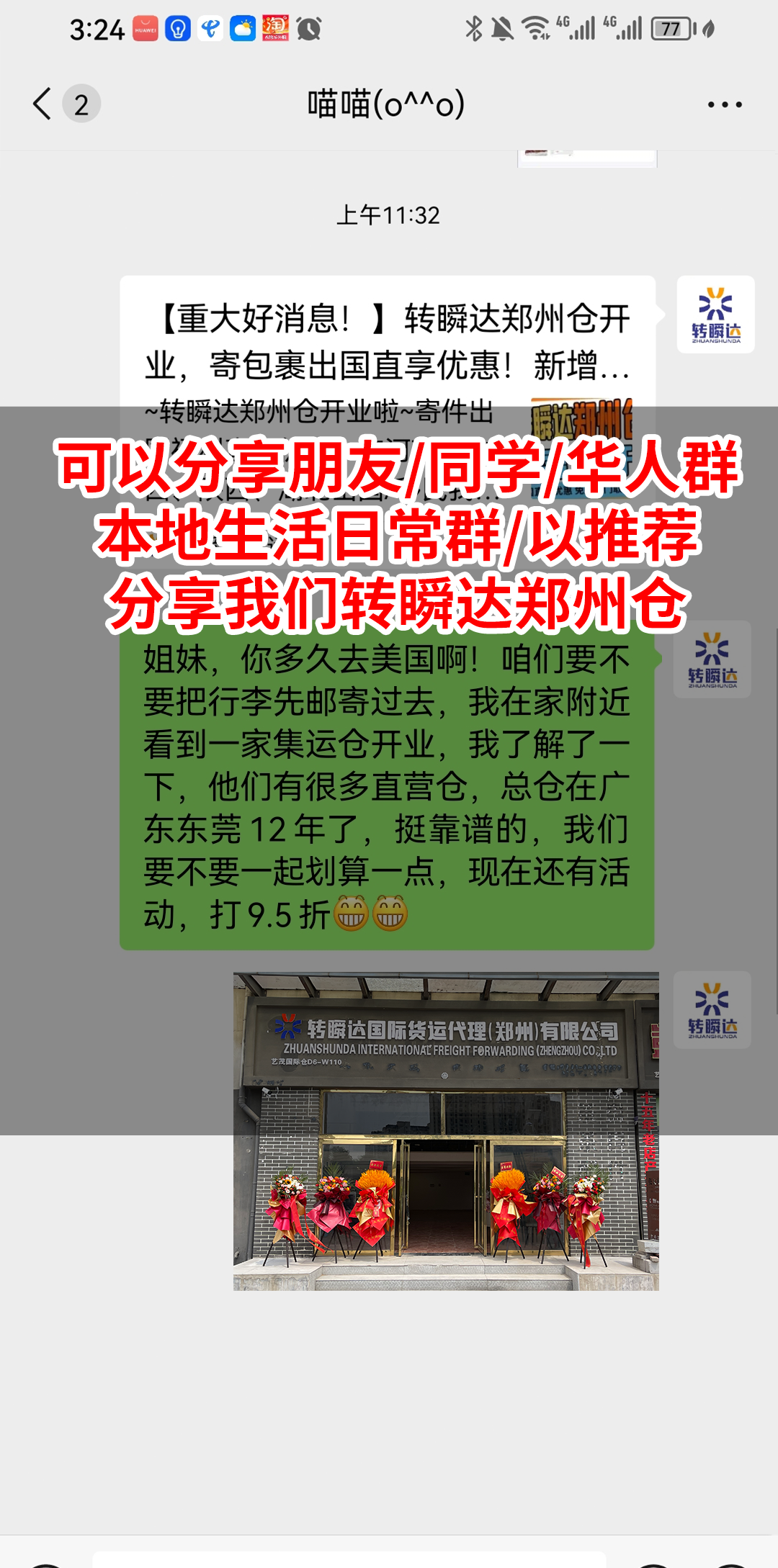 活动规则:开业期间以我们【"转瞬达郑州仓”邮寄行李包裹出国,河南/山西/陕西/湖北全城免费上门取件】为主题分享到每个平台/推荐/种草好评/邀请任意方式在加上我们转瞬达郑州仓的地址:河南省郑州市惠济区江山路街道清华园路艺茂国际仓D区6栋110铺"并且出货包裹单票每满10公斤即可优惠10元,可叠加优惠,