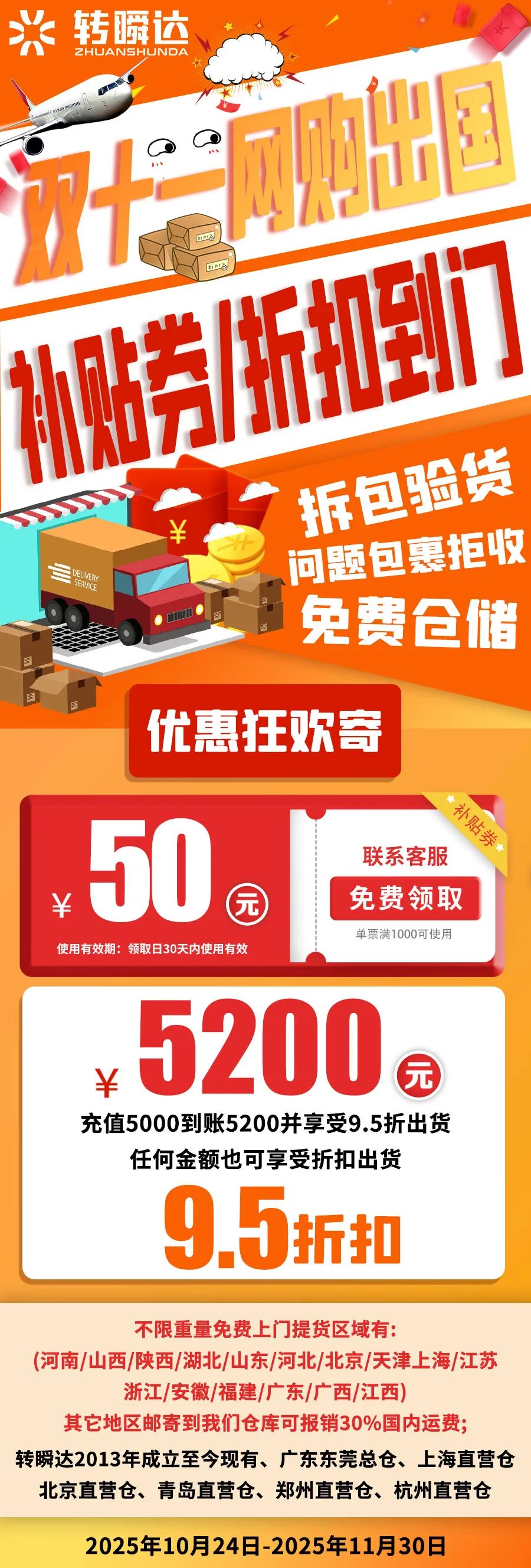 活动规则:双十一活动期间联系客服即可免费领取一张50元补贴券,单票运费满1000即可使用,(不可与任何活动同时参与)