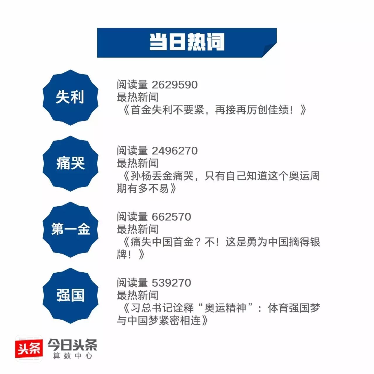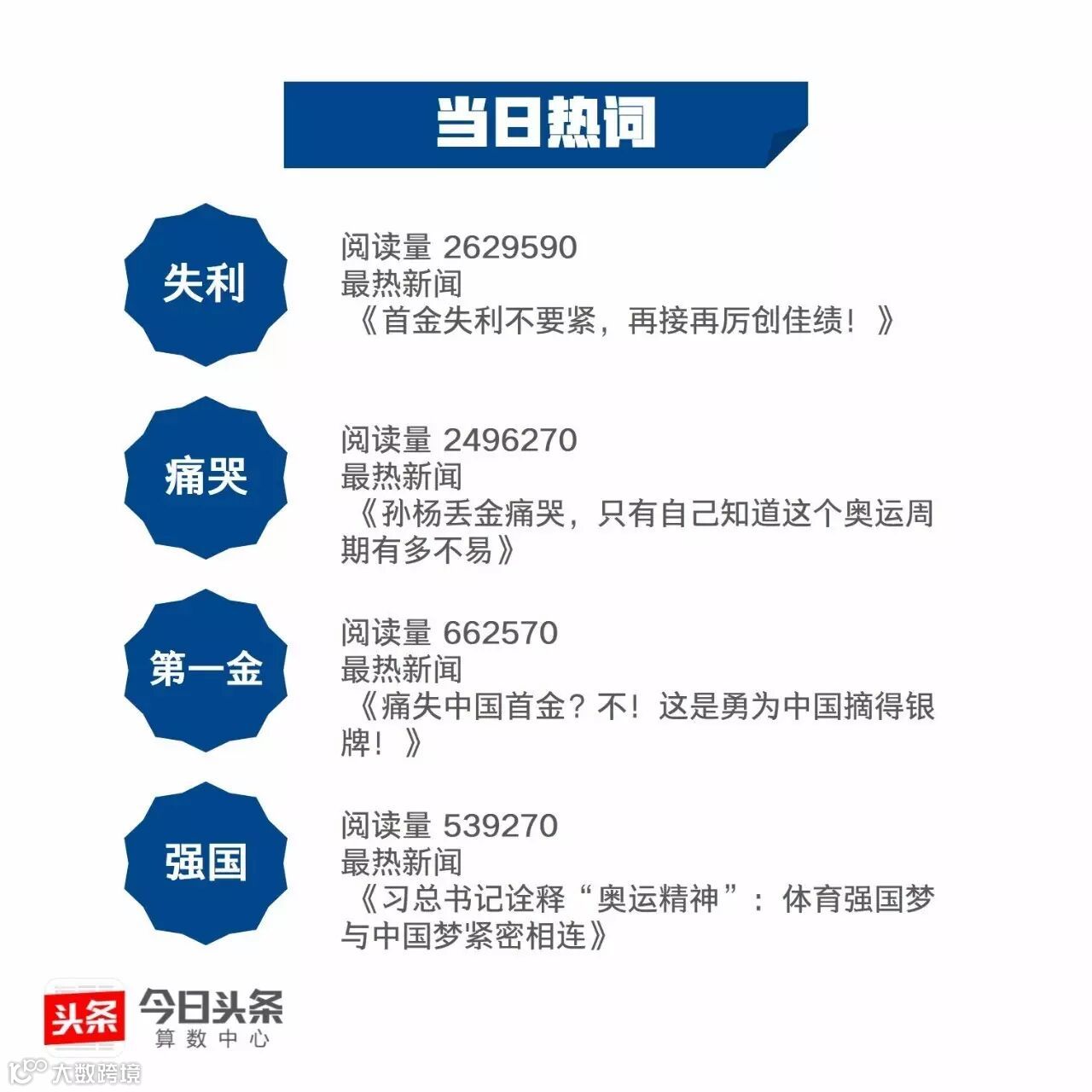 在今日头条平台上,网民关于奥运同样产生了大量阅读数据。大数据告诉你,首金固然重要,但我们更为银铜骄傲!