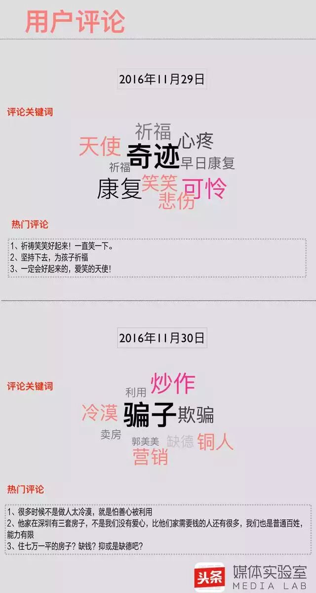 看惯了各种朋友圈筹款、公益活动的用户,会对这次的事情持什么态度呢?实验室发现用户评论在29日、30日有着明显的区别。