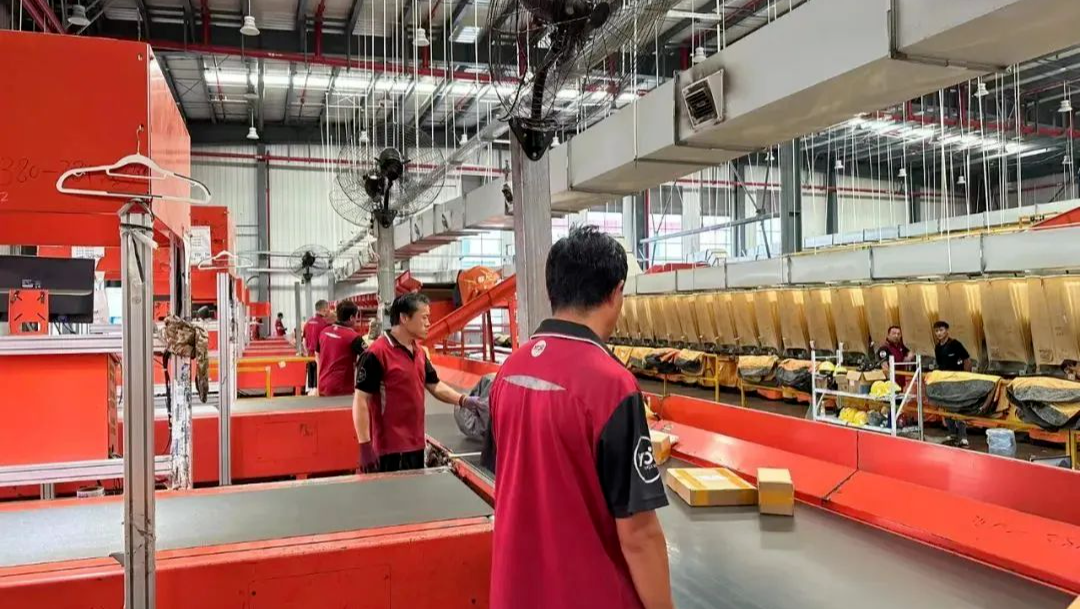 ⑦卸车员:将车内的快件拉到伸入车内的伸缩机皮带上完成卸车;