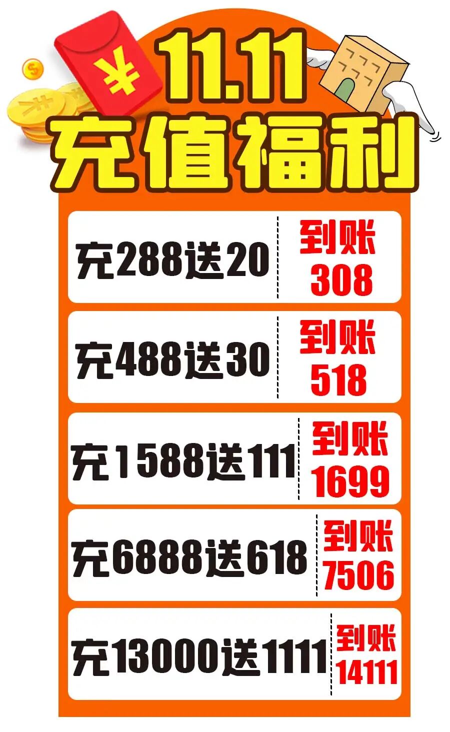 活动规则:此活动在2024年10月27日到11月6日充值即可赠送金额,充值越高赠送的金额越高,每个会员都能参与一次充值,预存充值金额不支持提现只限于运输消费,时间有限先充先送,此活动不与其他活动叠加使用(除本次活动和优惠券)参于此活动请截付款图联系客服。