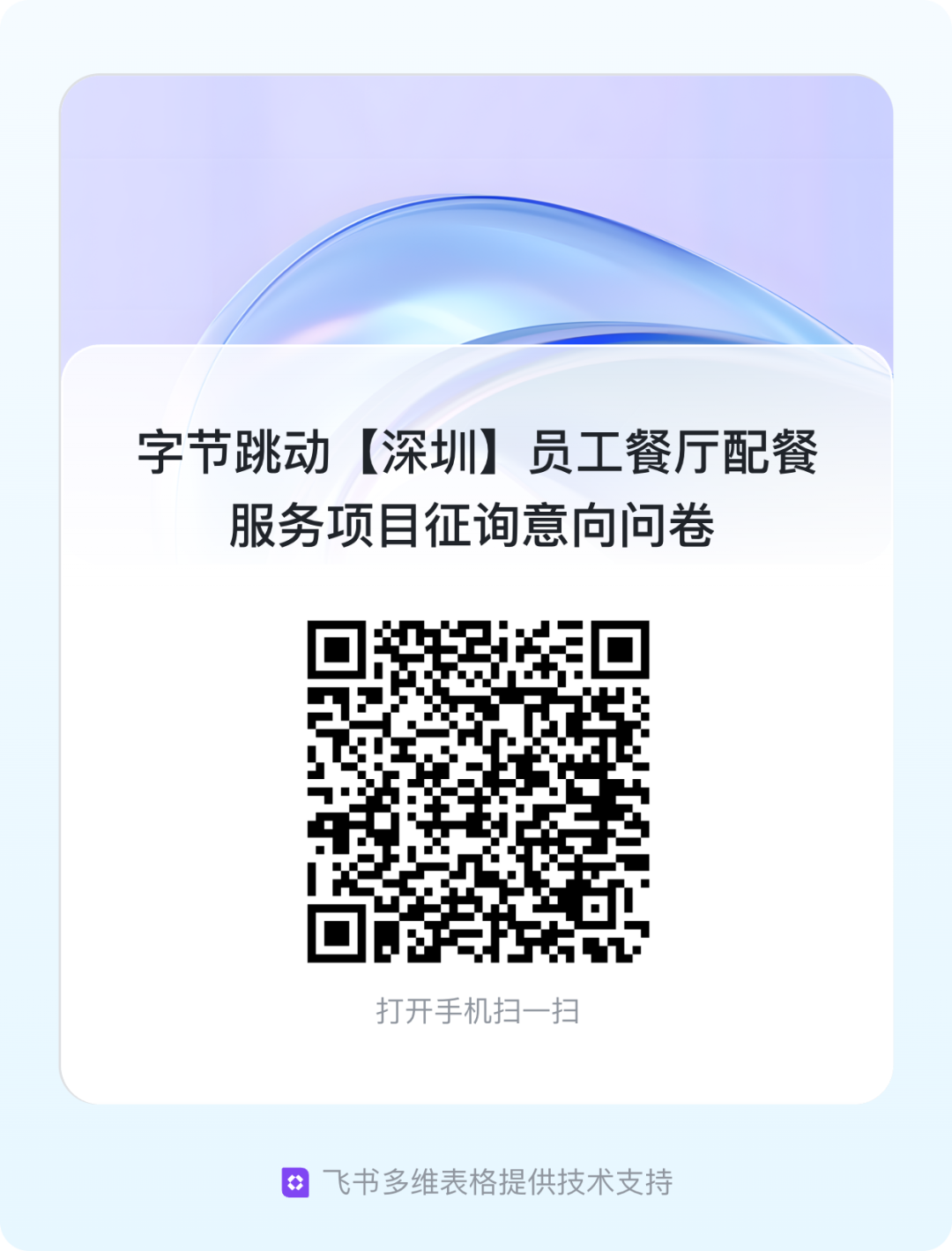 项目概况:字节跳动拟在深圳区域招募提供员工餐厅配餐服务的合作伙伴。