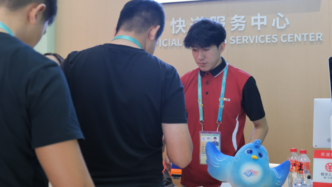 同样在亚残运村圆通驿站,天生听障的马瑞涛也是店员之一。原本在圆通商贸负责平面设计的他,听说圆通将在亚残运村提供寄递服务后主动请缨,想来此为聋哑客户提供手语服务。这几天,不少残障运动员告诉他,还是第一次在残疾人赛事中享受如此便利的快递物流服务,这让马瑞涛倍感激励。