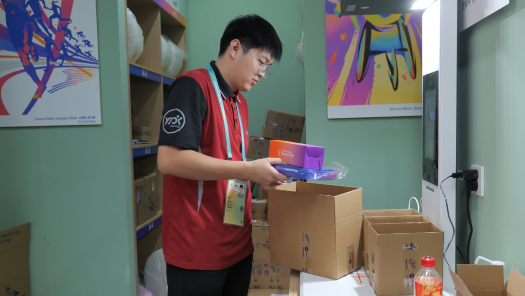 在杭州亚残运村的圆通驿站,店长石泽宇进入开赛以来最忙碌的阶段,推着轮椅的残疾人运动员进出驿站,近两天几乎每天都有超过百件包裹从亚残运驿站寄出。刚刚替一位马来西亚的盲人运动员打包完回国行李,又蹲下身接待刚进门的韩国残障运动员。这次杭州亚运会和亚残运会,石泽宇几乎打满全场,在他看来,比盲道、防撞条等无障碍设施更重要的,是服务的细节与温度。
