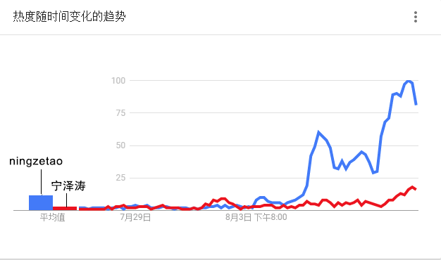 在Google Trends上,”宁泽涛”表示中国人的搜索情况,“ningzetao” 表示外国人的搜索情况,数据显示,外国人对宁泽涛的搜索趋势在里约奥运会前猛增,远超国人。国民男神“宁泽涛”要变身国际“宁”!