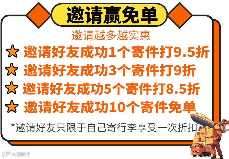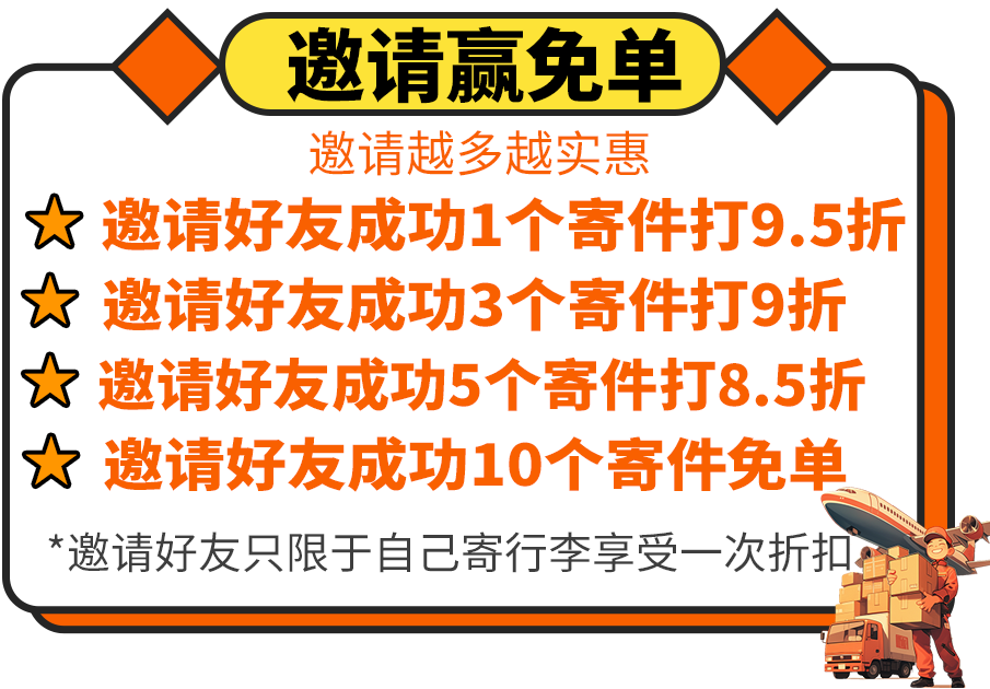 寄行李享受运费9折起,邀请越多折扣越大;