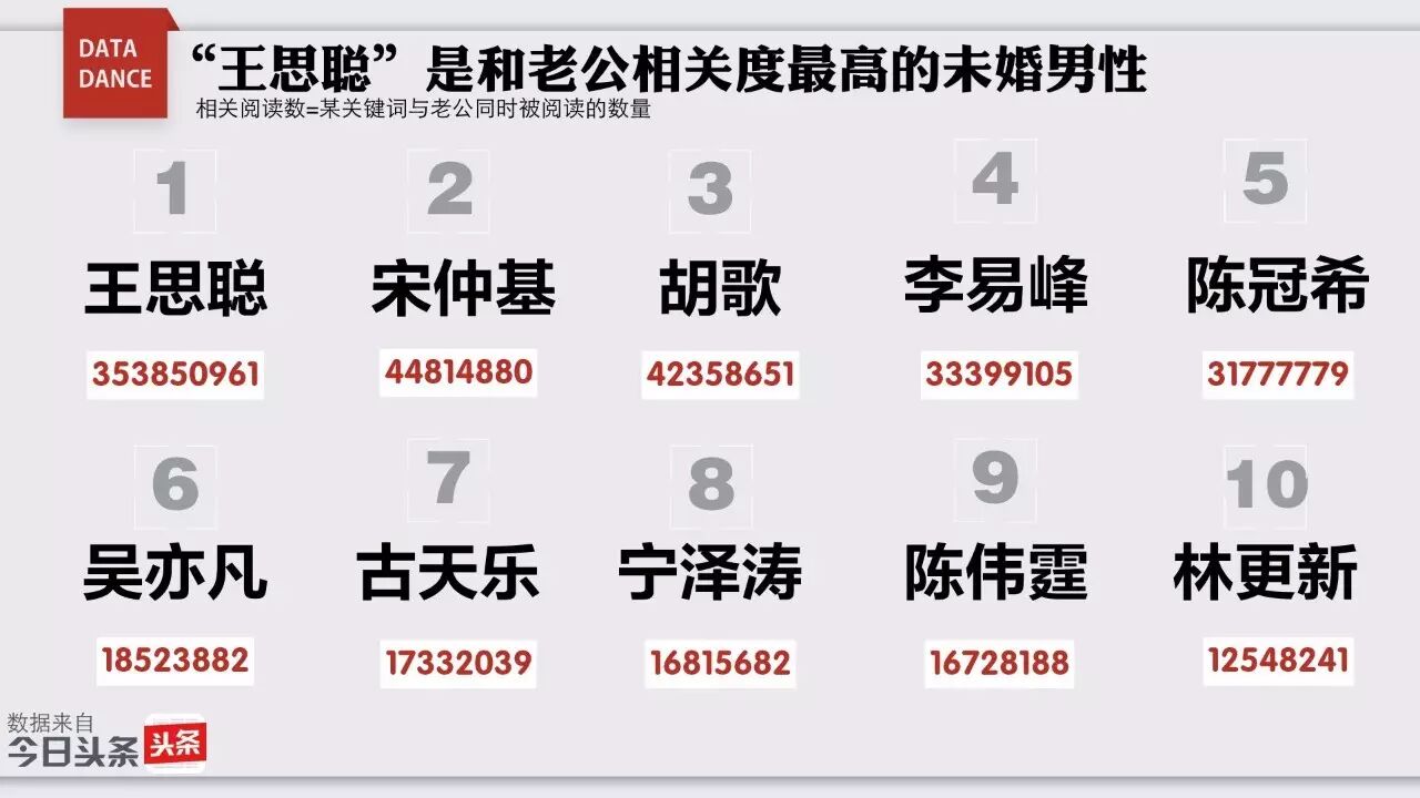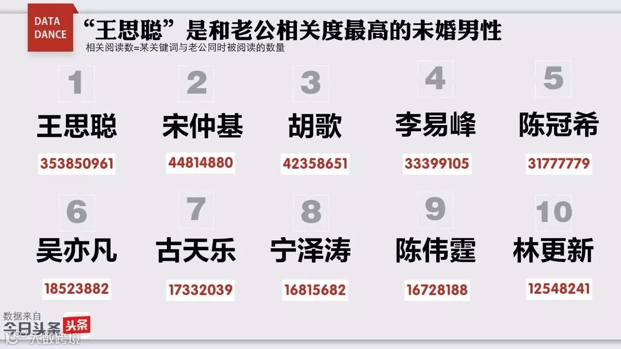 在宋仲基老公霸屏的时候,大数据与老公相关度最高的未婚男性是王思聪,第二名才是宋仲基。看来,钱和颜真的是很难选啊,就像小时候想着要上清华还是上北大一样难选啊。
