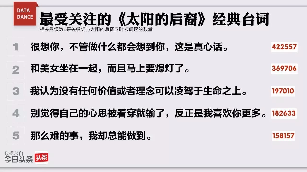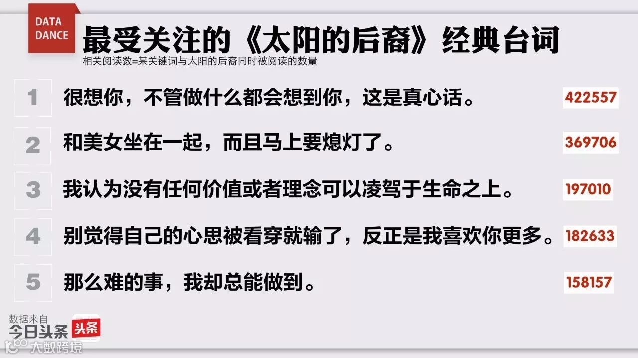 《太阳的后裔》一播出,就掀起了一场看“老公”撩妹的狂潮,今天大数据就来教你说太阳里那句情话,更能获得妹子的芳心。