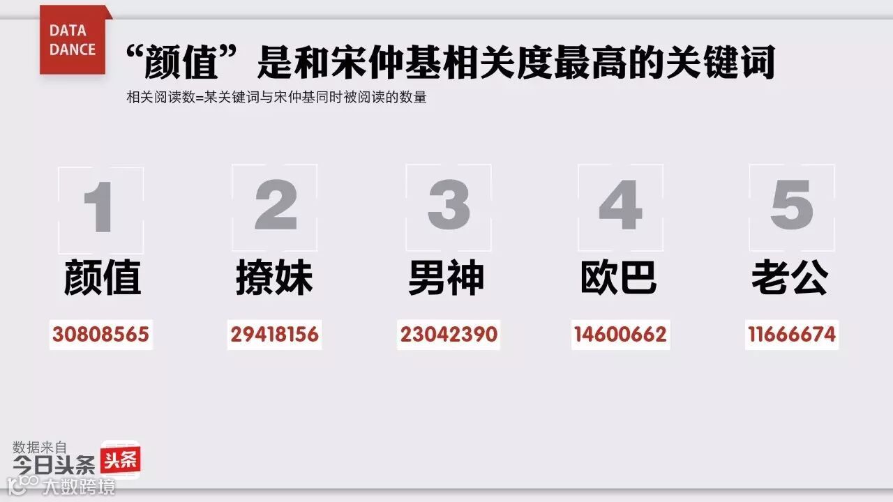 与宋仲基相关度最高的关键词前三是“颜值”、“撩妹”、“男神”,看来撩妹还是跟颜值有很大的关系。有人说长得好看的叫撩妹,长得不好看的叫骚扰,这个看脸的世界啊,果然撩妹需谨慎。