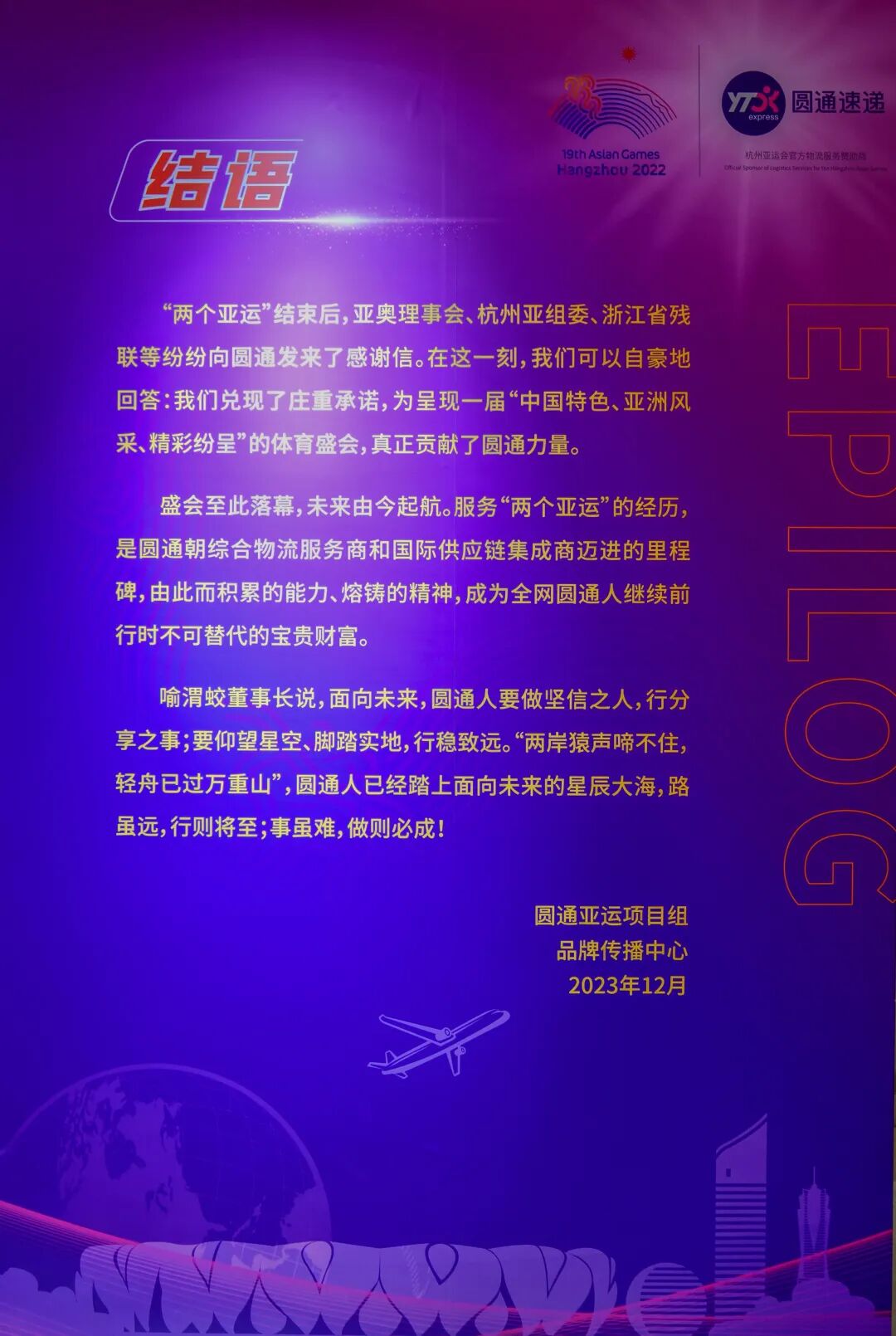 2023年9月23日,杭州第19届亚运会在钱塘江畔盛大开幕,也展开了“两个亚运,同样精彩”的绚丽画卷。中国快递物流企业——圆通速递,以杭州亚运会官方物流服务赞助商的身份,走上国际赛事主舞台,承担“两个亚运”的赛事物流服务。