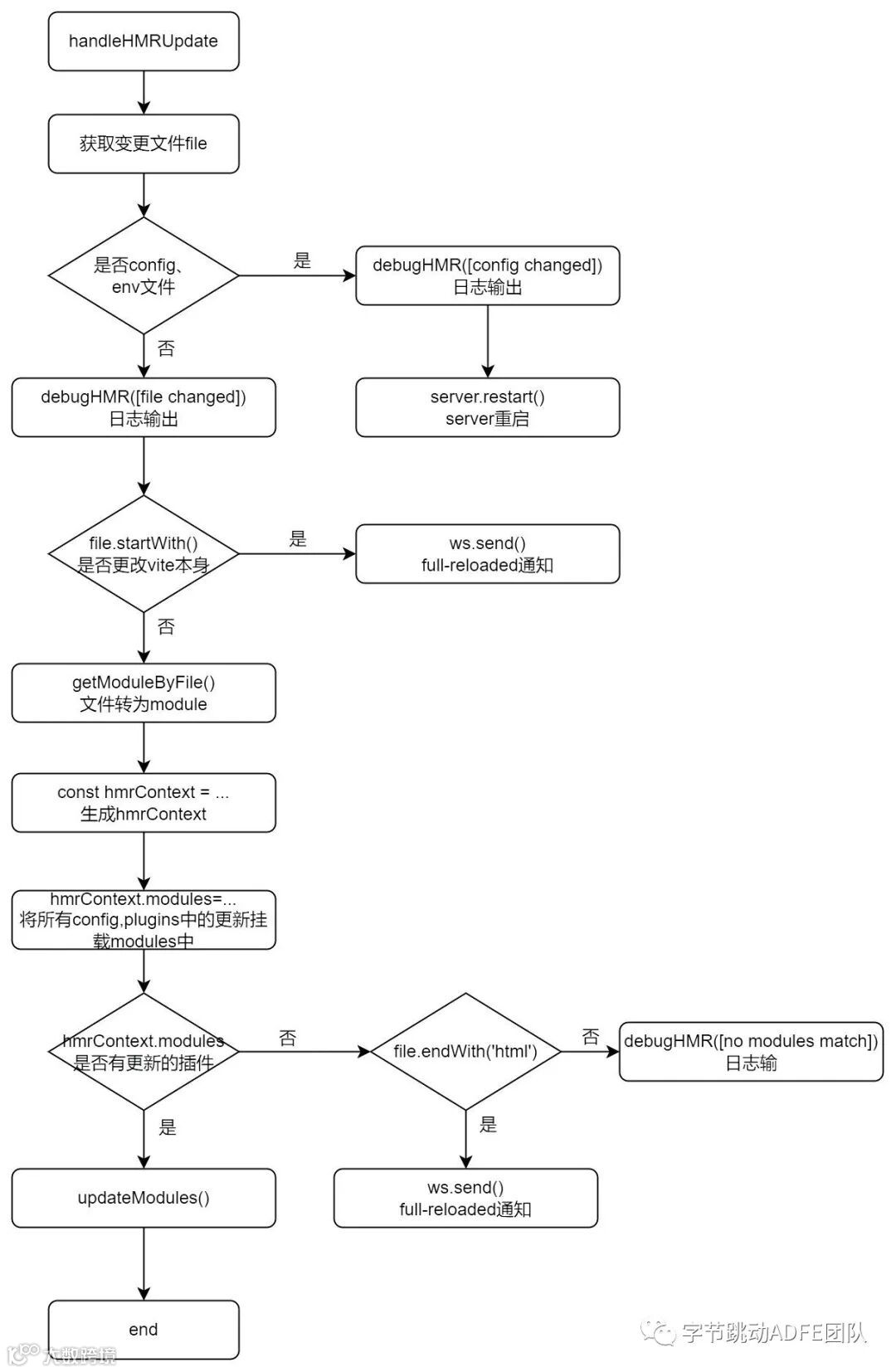 handleHMRUpdate 模块主要是监听文件的更改,进行处理和判断通过WebSocket给客户端发送消息通知客户端去请求新的模块代码。