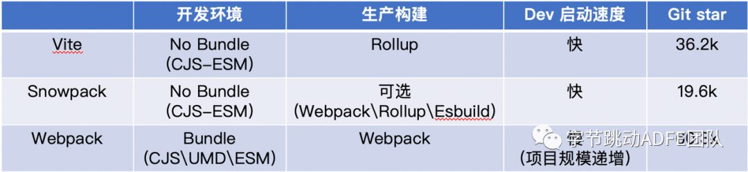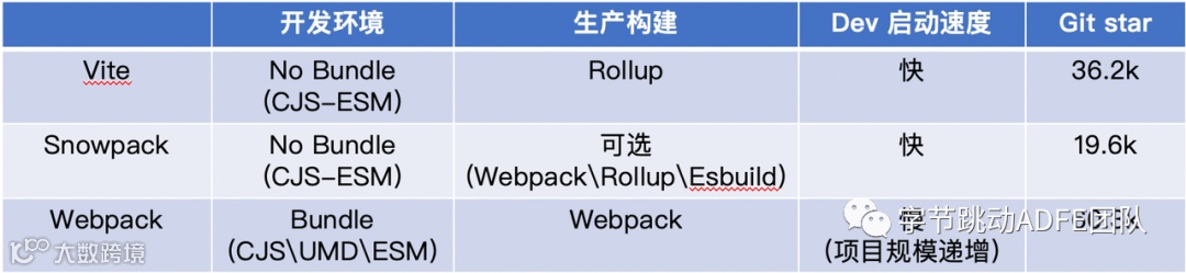 两者较大的区别是在需要bundle打包的时候Vite 使用 Rollup 内置配置,而 Snowpack 通过其他插件将其委托给 Parcel/``webpack。