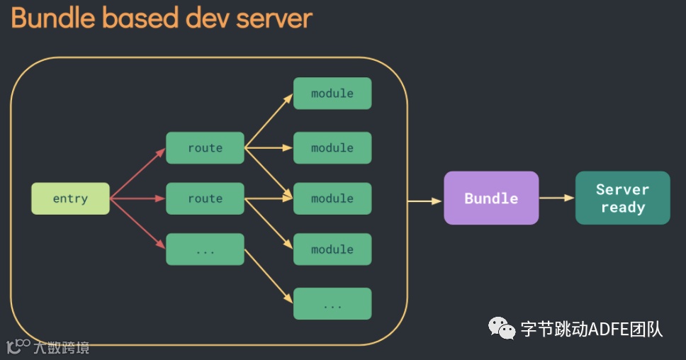在Vite出来之前,传统的打包工具如Webpack是先解析依赖、打包构建再启动开发服务器,Dev Server 必须等待所有模块构建完成,当我们修改了 bundle模块中的一个子模块, 整个 bundle 文件都会重新打包然后输出。项目应用越大,启动时间越长。