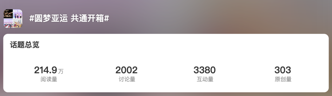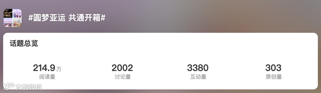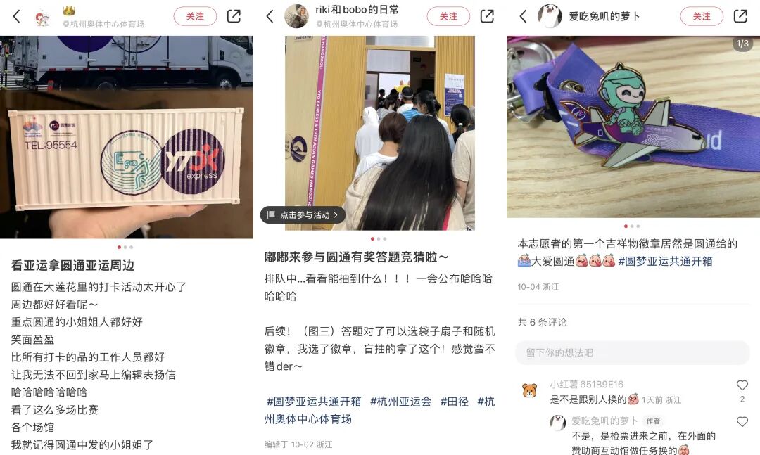 除了展位现场的活动,圆通还为“超级箱”开启了精彩纷呈的线上打卡活动,鼓励现场观众在微博、抖音、小红书等平台发布“超级箱”打卡动态,并带上圆通特设话题#圆梦亚运 共通开箱#。线上热烈的讨论氛围也让“超级箱”在网络上也成为了令人心驰神往的打卡地,目前#圆梦亚运 共通开箱#的话题仅在微博平台就已达到百万级阅读量。