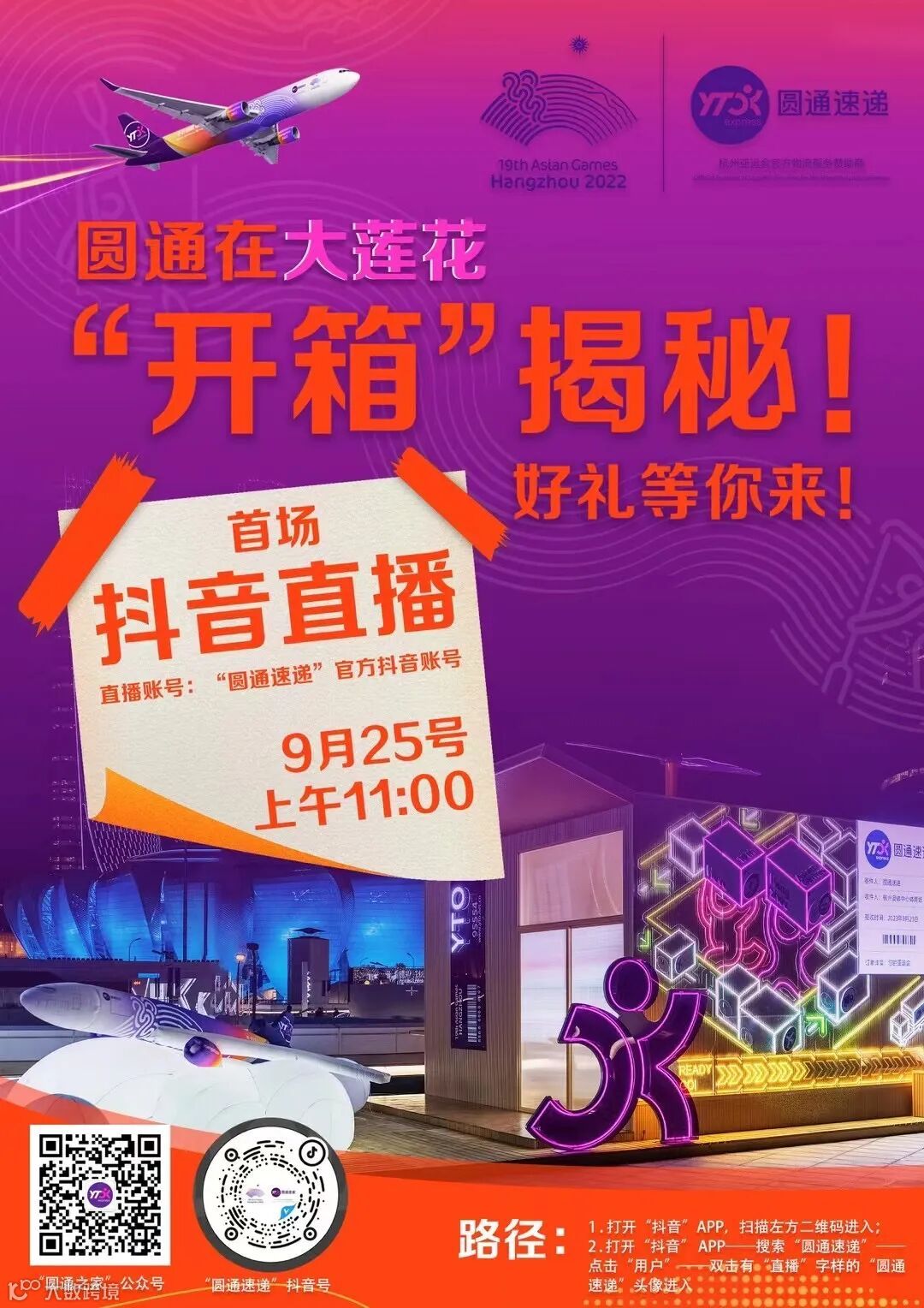 目前因“大莲花”处于亚运会闭幕式的筹备运营期,圆通“超级箱”展厅暂时关闭,但在亚残运会开闭幕式期间,圆通“超级箱”依然会“亮灯开箱”,与更多群众见面。