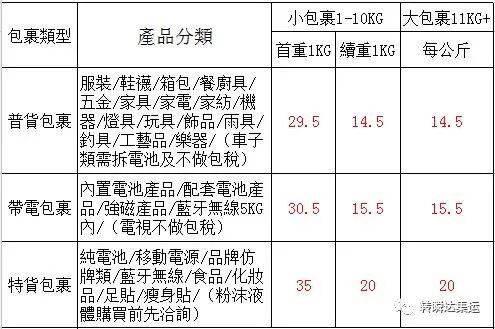 一、關於價格:報價幣別為人民幣,重量單位為每公斤,不足1公斤取1公斤計費。以上未列出品項需洽詢。