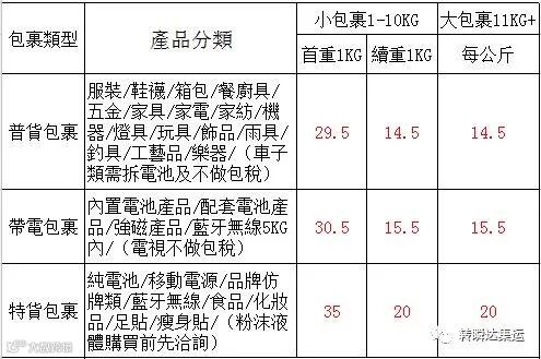 二、關於包稅:以上報價普貨包裹及帶電包裹皆為不包稅價格,如需包稅每KG加收1元。特貨包裹為默認包稅。