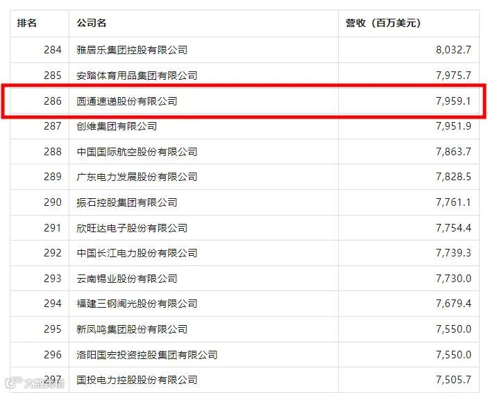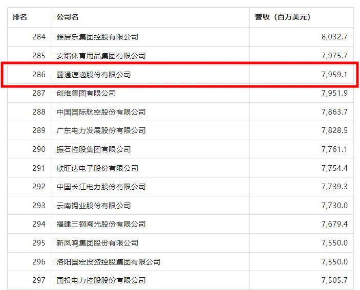 7月25日晚间,财富Plus APP发布了2023年《财富》中国500强排行榜。其中,圆通速递股份有限公司位列该榜单第286位,这也是圆通速递股份有限公司自上市以来连续7年上榜。