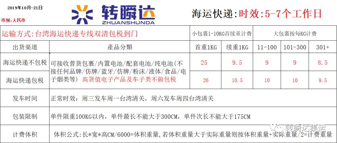 转瞬达集运臺灣海運快遞包稅服務來了,大家的福音!