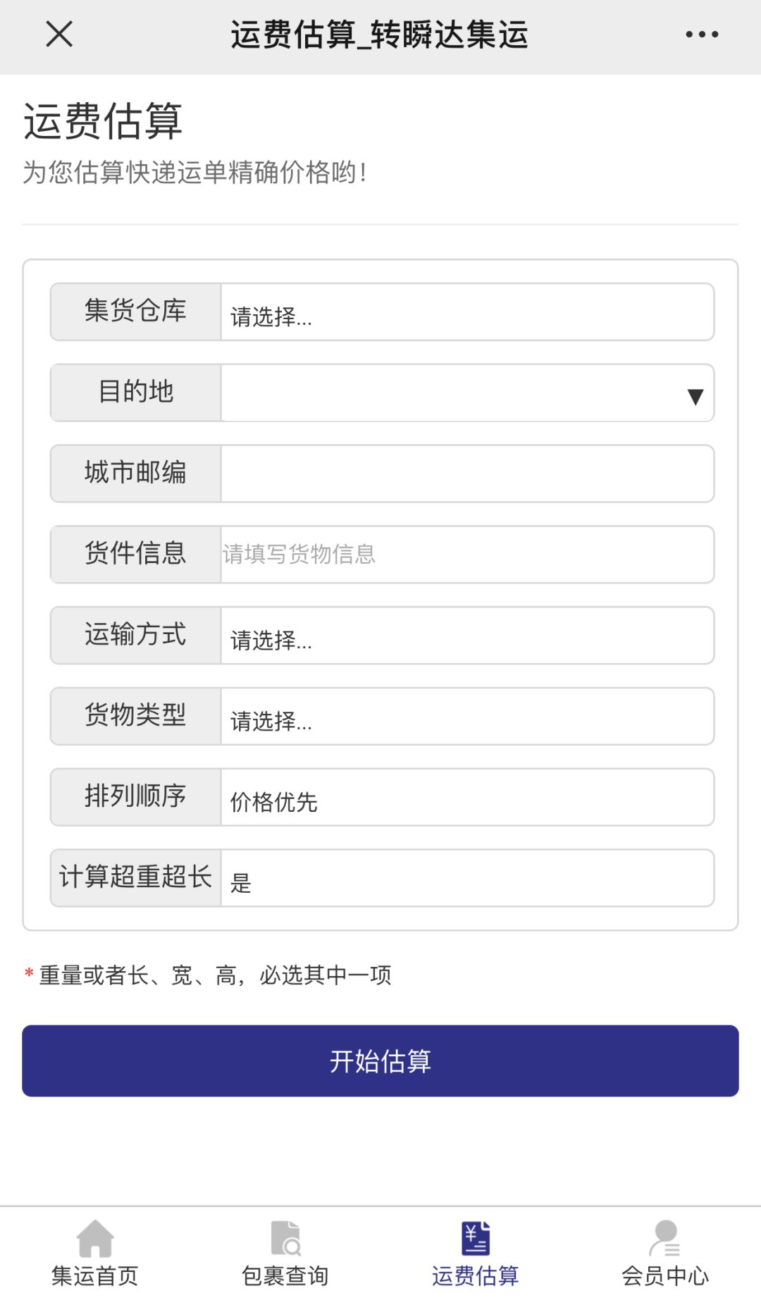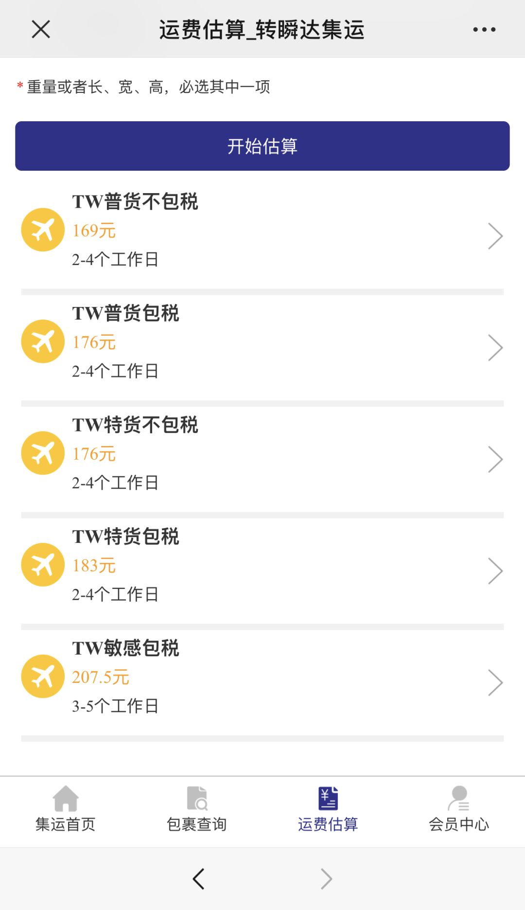 再点击【运费查询】,就可以进入估算运费的页面啦!