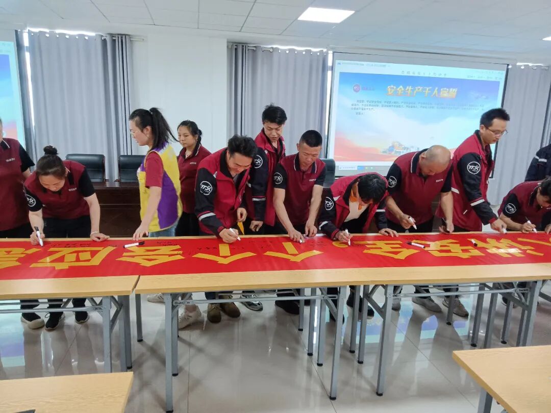 6月中旬,圆通云南省区组织开展安全生产月主题培训,员工观看安全教育视频,中心各主管、组长等负责人签订安全生产责任书,在印有“人人讲安全,个个会应急”的横幅上签名并进行宣誓。为激发学习安全知识热情,培训还设有奖竞答环节,并颁发班组安全流动红旗。