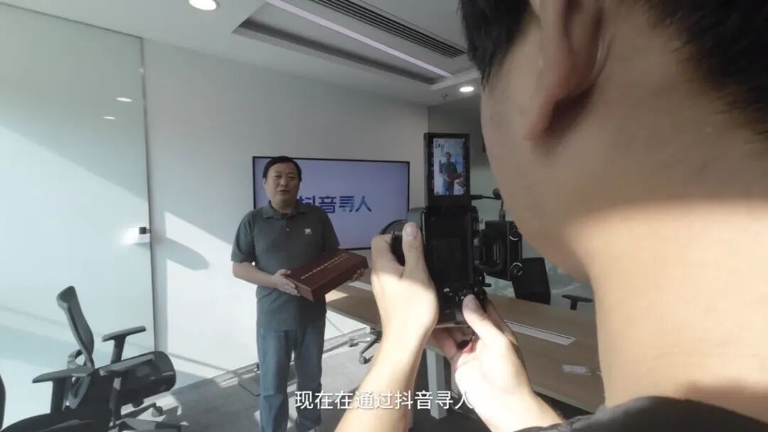 陈悦拍摄抖音寻人视频,借助科技的力量寻找后人 (图源:抖音寻人纪录片《甲午:131年后的寻人启事》)