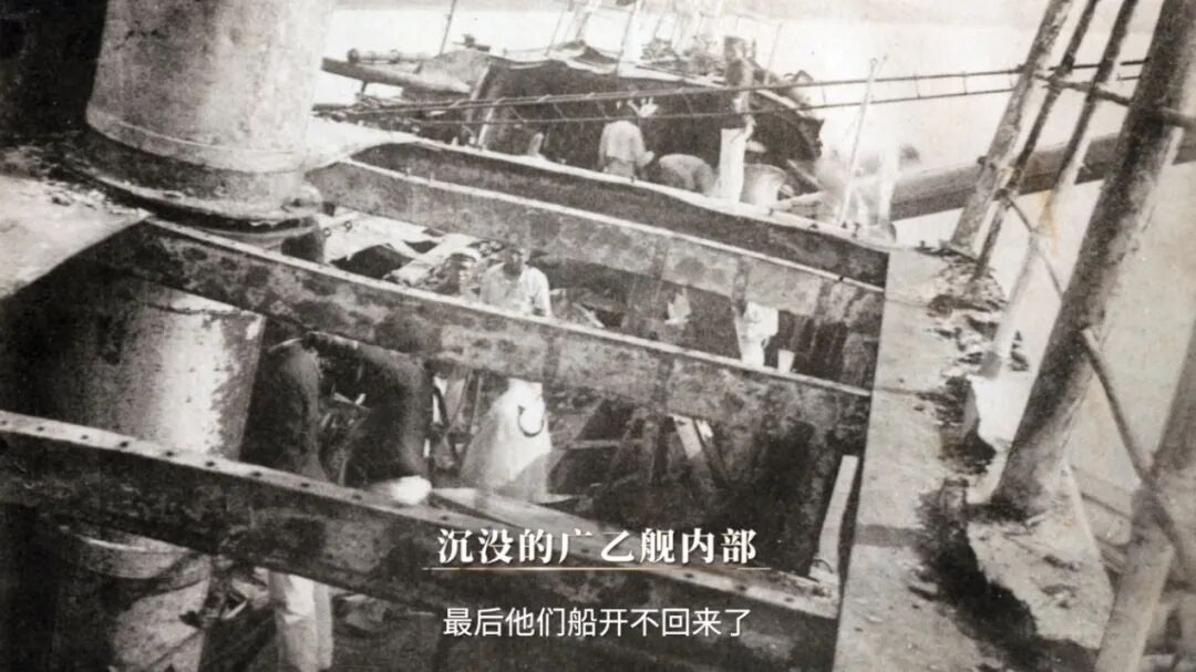 经历战斗后的广乙舰 (图源:抖音寻人纪录片《甲午:131年后的寻人启事》)