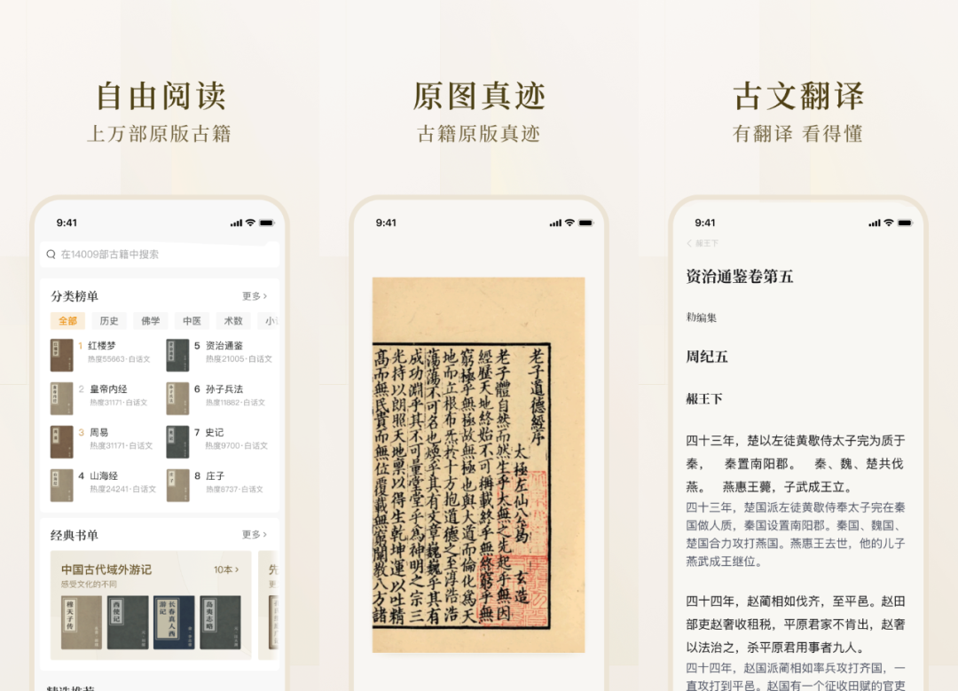18000 多部古籍,未来还会更多:这里的资源内容和“识典古籍”网页版是同步的,网站上有的古籍,在 APP 里都能全文阅读和搜索。