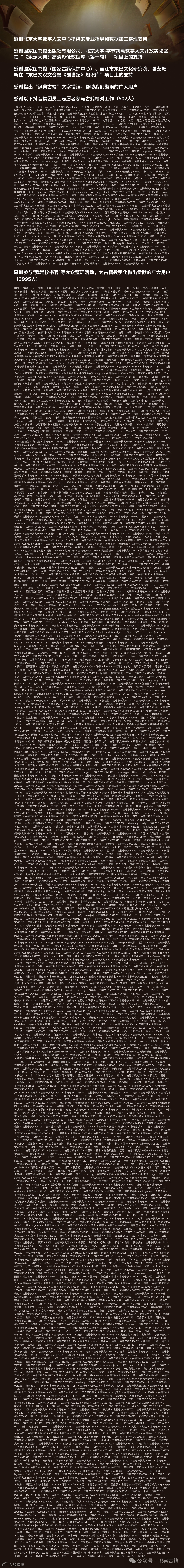 “识典古籍”是一个全民共建的平台;它取得的成就也离不开大家的共同努力,特此代表项目团队对所有为平台作出贡献的个人和团队表示感谢。