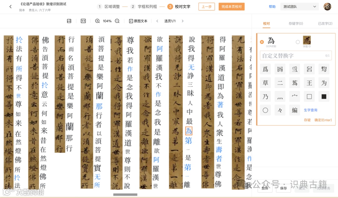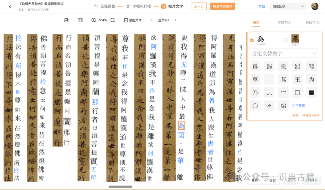 为了实现快速处理大量古籍资源,“识典古籍”项目开发了古籍OCR;自动分卷、切页、正注文、标题标记;自动标点;自动命名实体识别和词条对齐;自动文言文、现代文翻译等技术。在将这些技术应用于古籍整理实践过程中,项目也克服了诸多大小问题、收到了内外部的众多反馈,技术也不断在实践中得以打磨精进。这些技术也通过“识典古籍”整理平台免费开放给广大古籍研究者和整理者,用于各类内部或开放的古籍整理项目。