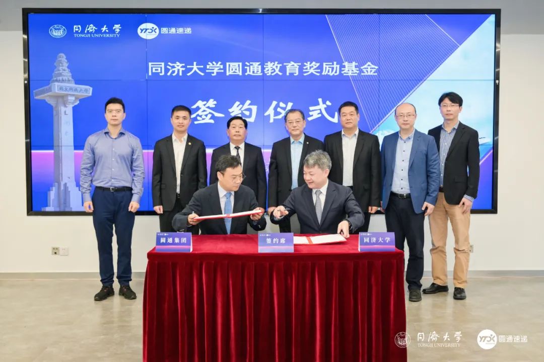 同济大学校长助理、校长办公室主任、对外联络与发展办公室主任、上海同济大学教育发展基金会秘书长刘润和圆通集团副总裁彭科分别代表双方共同签署《同济大学圆通教育奖励金捐赠协议》,设立同济大学圆通教育奖励基金,定向支持管理科学与工程专业的发展,助力学院A+学科发展再上新台阶。