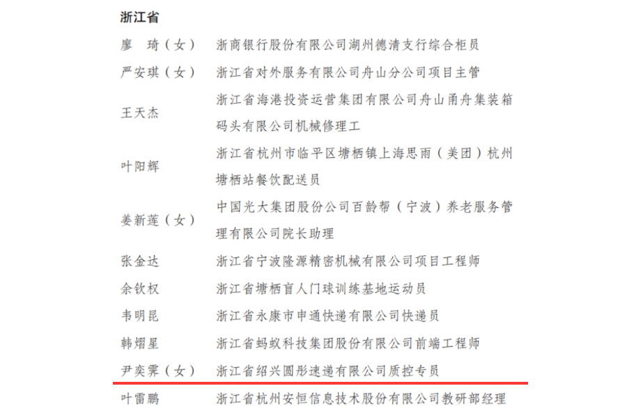 近日,共青团中央作出表彰决定,授予296个团组织全国五四红旗团委称号,授予389个团组织全国五四红旗团支部称号,授予482人全国优秀共青团员称号,授予342人全国优秀共青团干部称号。其中,圆通浙江绍兴分公司质控专员尹奕霁被授予"全国优秀共青团员"称号。