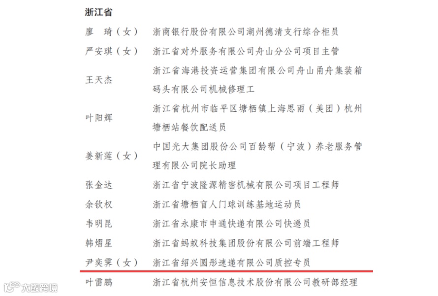 2017年,20岁的尹奕霁大学毕业后就加入了绍兴圆通,一干就是6年。她在平凡的岗位上默默坚守自己的责任和使命,以踏实细致的工作作风、认真负责的工作态度、良好的职业道德,在平凡岗位上默默奉献自己的青春,树立了快递行业优秀从业青年的良好形象。