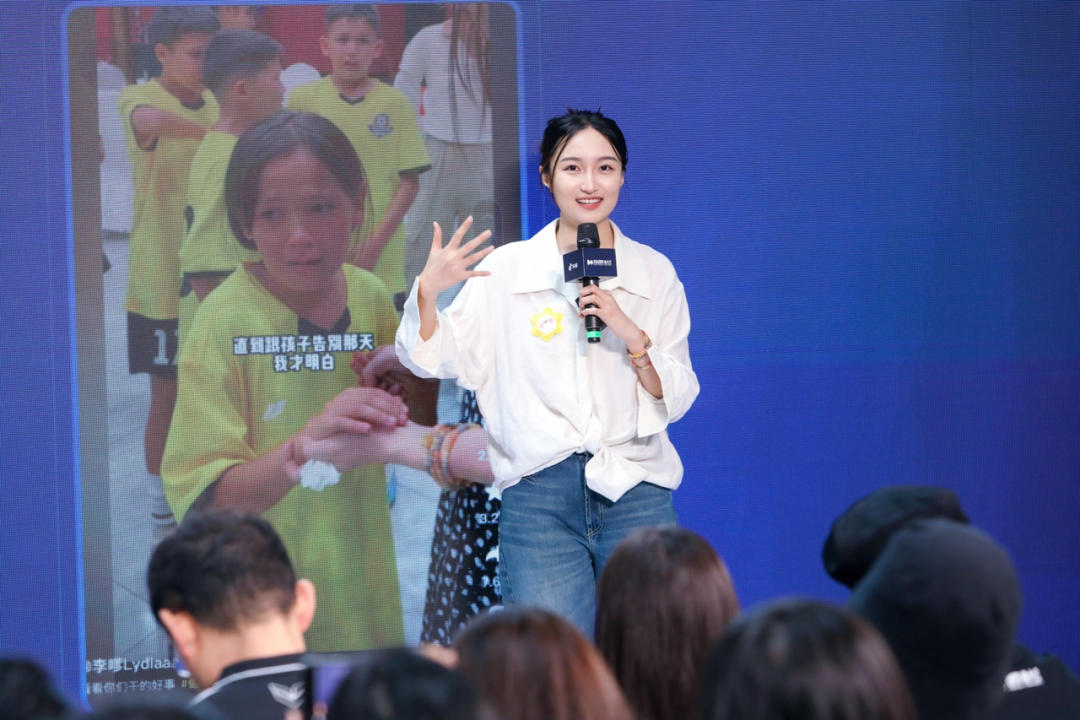 而今年,李嗲和她的粉丝们将目光投向远在新疆的足球少年们。在那里,孩子们穿着帆布鞋,在水泥地上追逐足球梦。亲眼看到这一切的李嗲,决定通过视频叙事,描述大家追逐梦想的模样,引发很多人深度共情。在筹到一百多万善款后,李嗲本着对捐赠者负责的想法,再次前往新疆。在基金会查账、走访学校和供应商,她用较真的态度让粉丝看到孩子们的踢球环境在改善,看到这个世界真的有不求回报做善事的好人。