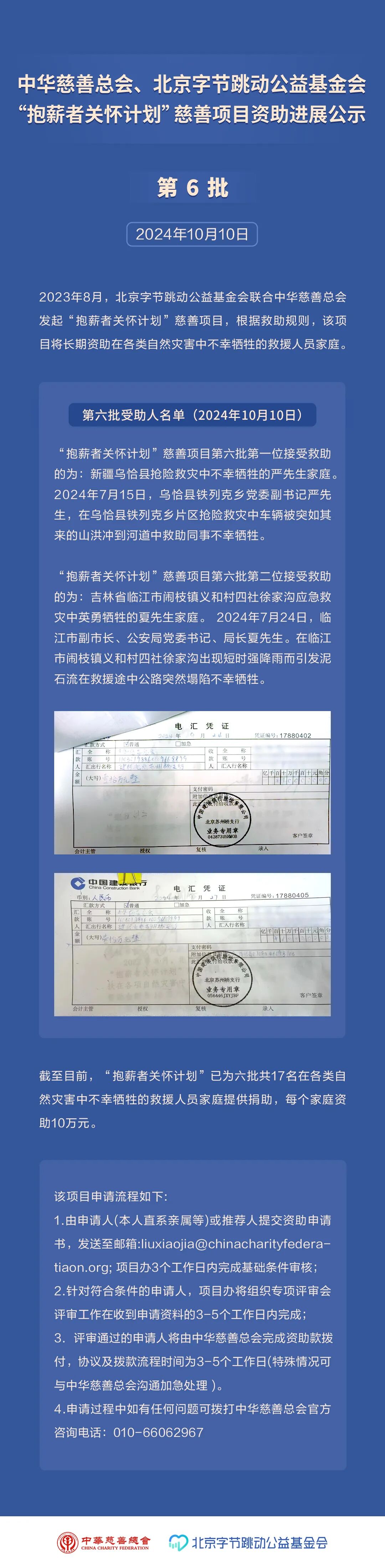 导读:北京字节跳动公益基金会联合中华慈善总会,发起“抱薪者关怀计划”慈善项目,向自然灾害中不幸牺牲的救援人员家庭提供必要资助