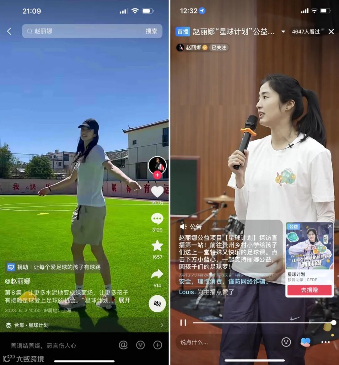 在足球教育领域,中国女足退役运动员@赵丽娜 携手中国足球发展基金会与字节跳动公益共同发起“星球计划”公益足球项目,累计筹款超过252万元,为云南、贵州、新疆、江西4个县域的孩子修建了4个5人足球场,圆乡村地区儿童的足球梦。