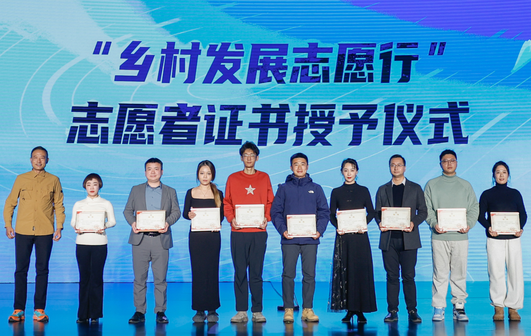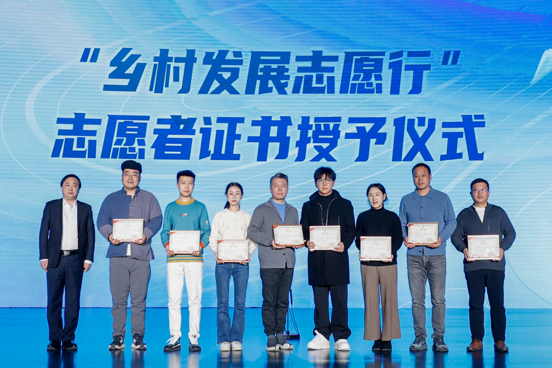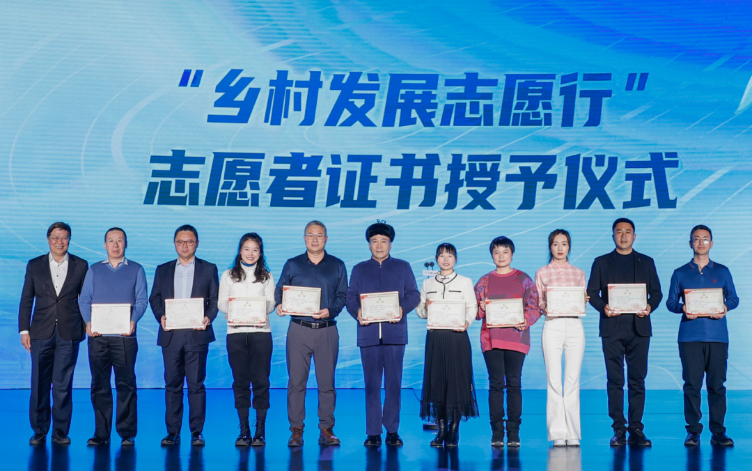 活动现场,中国乡村发展志愿服务促进会联合抖音公益发起2024年“乡村发展志愿行”倡议,呼吁更多人参与乡村志愿服务,共建美好新乡村。