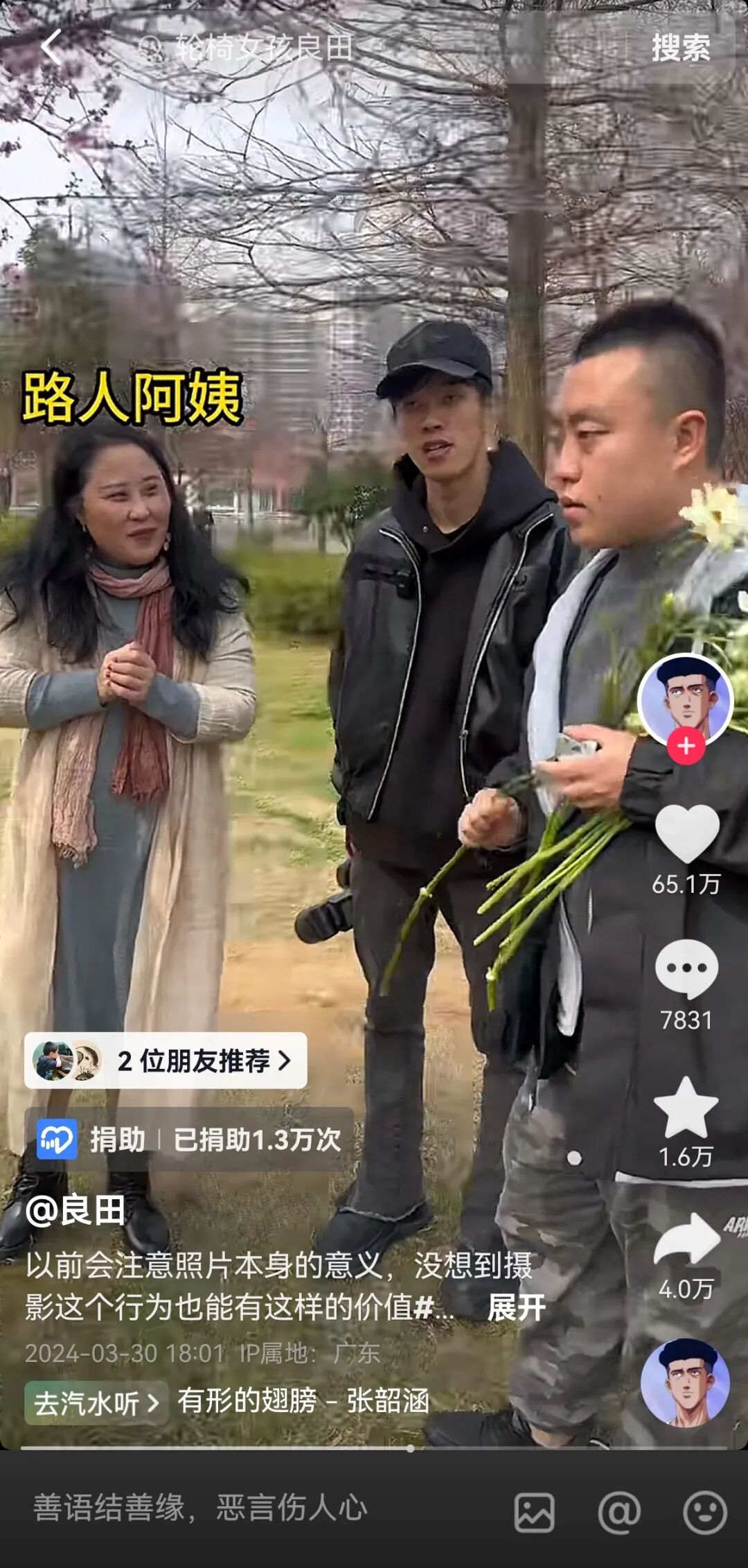 安秋金在抖音通过美食传递爱,而00后摄影师良田,则是通过镜头定格善意。