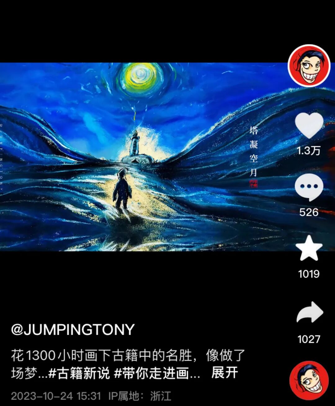 在参加“识典杯·古籍内容创意季”的人中,同样被《鸡足山志》吸引的还有画家、抖音创作者@JUMPINGTONY。