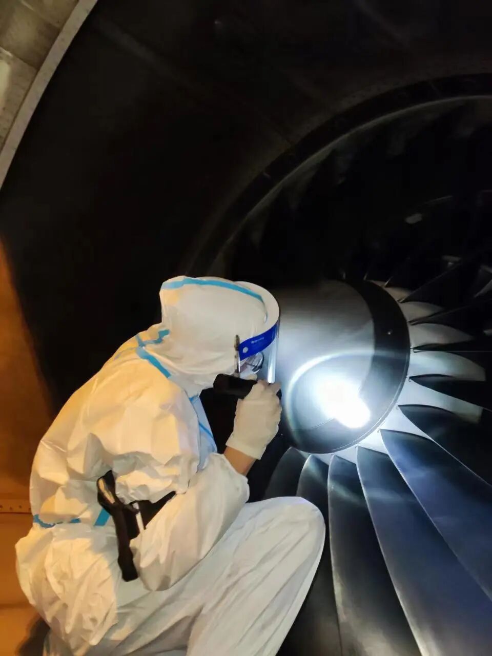 为了严格执行疫控规定,所有国际航班都要做好两道消杀与闷舱工作,留给郝叶朝们的时间更少了。他和同事分工上前,对照着工作单上10个大项、66个小项,逐一完成各项检查工作,“每架飞机都像孩子一样,什么脾气、哪里最容易出问题,基本上心里都有数。” 郝叶朝放下起落架舱门,他探着头仔细检查着每一处部附件和紧固件。