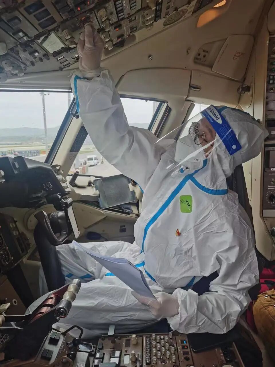 8点半,郝叶朝套上蓝色防护服,拉上手套,带上口罩和面罩,一切准备就绪。和上一班的同事做过交接,他来不及多作停留,10点半飞往新加坡樟宜国际机场的航班即将起飞,留给他的时间并不多。