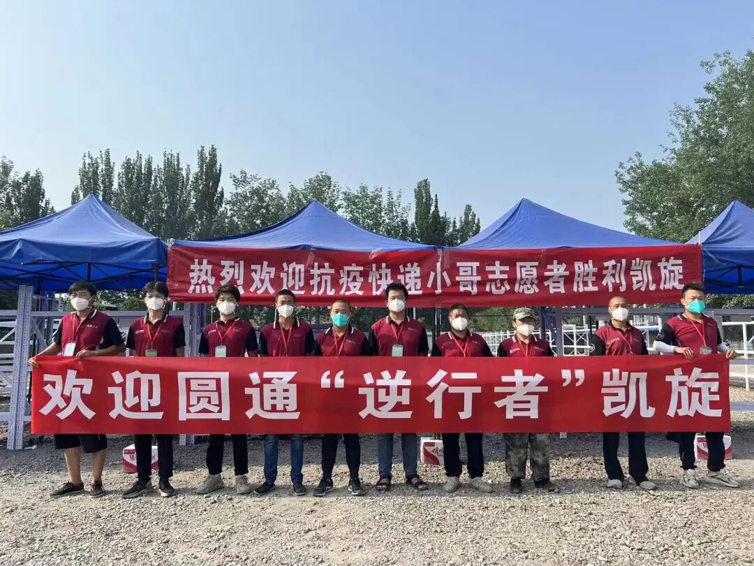 “欢迎你们胜利凯旋,平安回家!大家辛苦了!”6月10日上午,在北京市昌平区北七家镇东三旗村驻扎8天做好抗疫志愿服务的10名圆通小哥圆满完成任务凯旋。