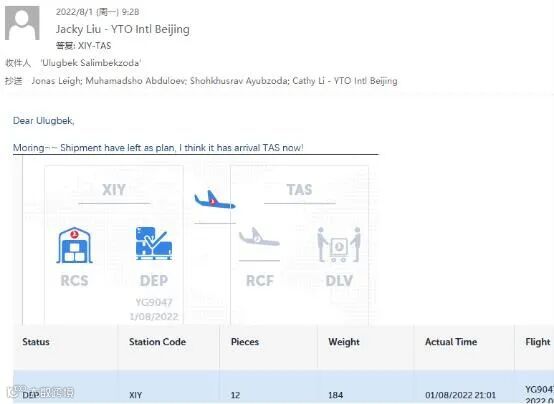 接力棒交到圆通手里,但剩下的时间却不多了。刘平几乎是连夜赶出的方案,双方最终敲定由8月1日圆通航空的西安—塔什干航班承运这12箱近200公斤衣物。“我们对比了上海、北京、广州飞往中亚的其他航班,只有圆通航空这班距离最近、还是直飞,用时最快。”距刘平测算,这趟今年6月新开的圆通航空中亚航线,能为本次运输节省出约3天时间。