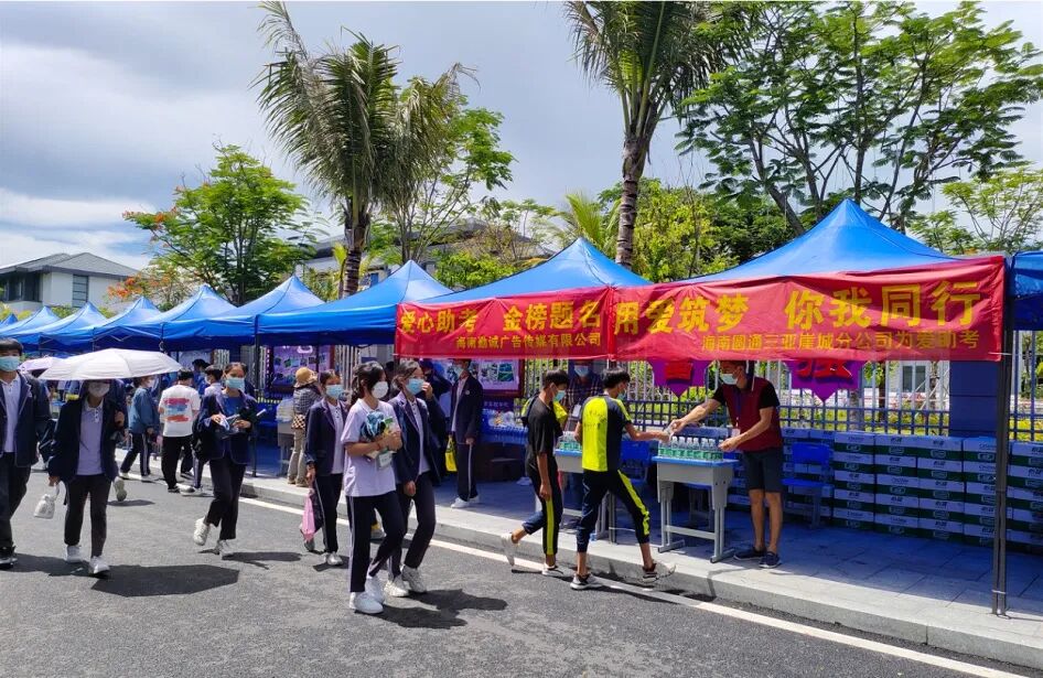 6月25日,海南2022年中考正式拉开帷幕。为了营造安心舒适的陪考环境,给广大考生及陪考家长提供贴心便利的助考服务,圆通海南三亚崖城分公司员工组成志愿者服务团,在考点周边设置“爱心护考点”,开展“爱心助考 圆梦未来”志愿服务活动。