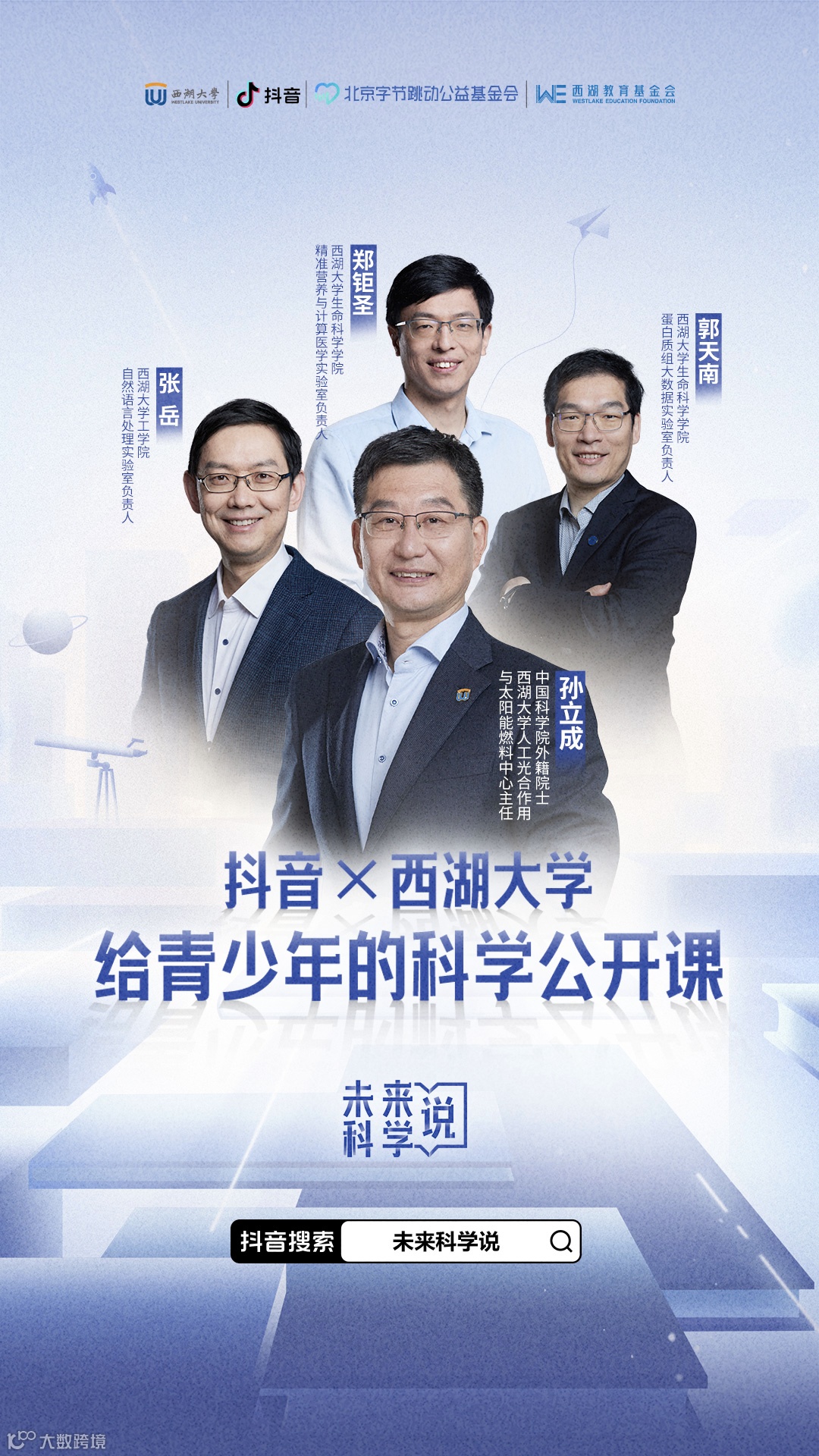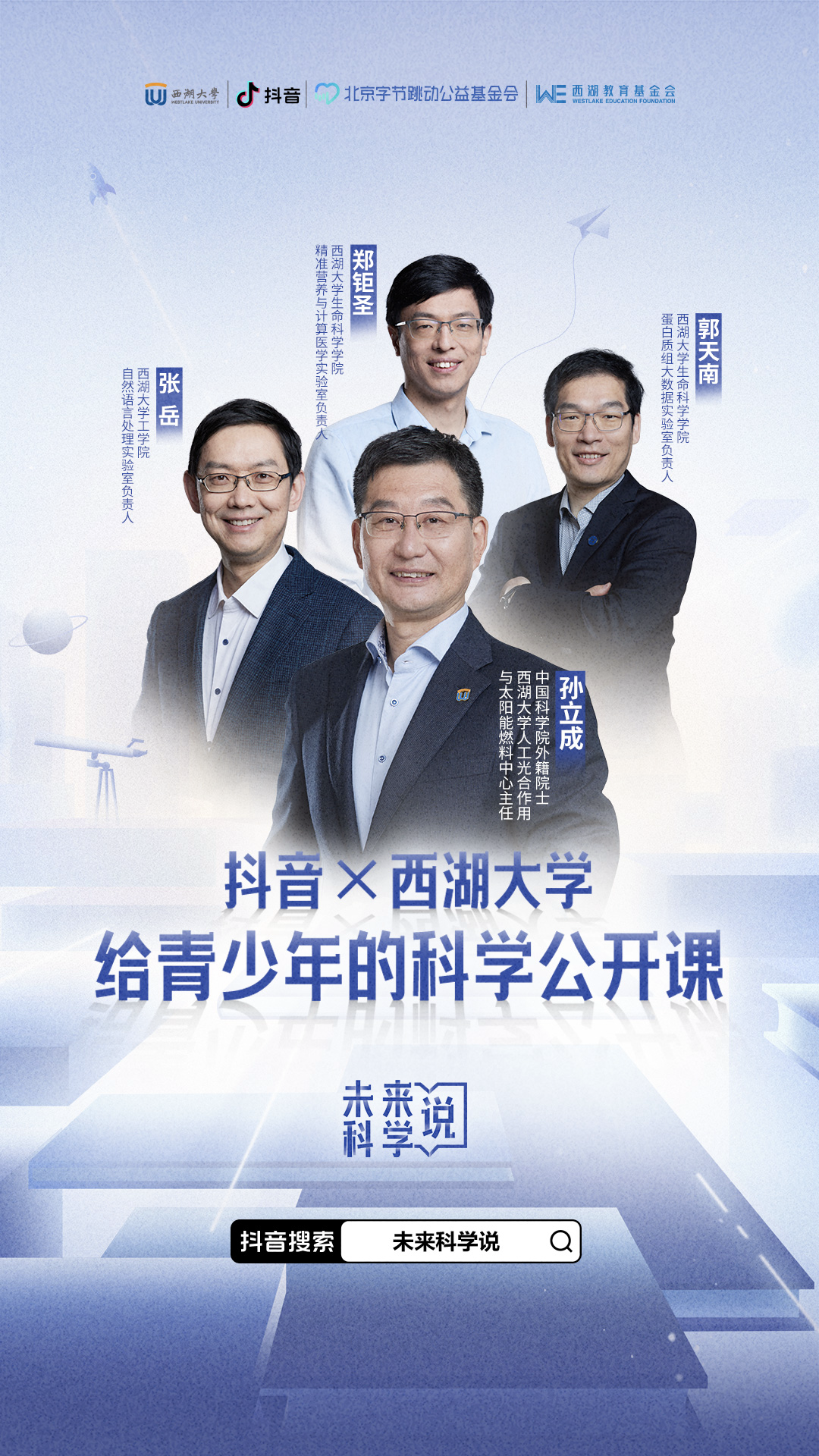西湖大学是新中国第一所由社会力量举办、国家重点支持的新型研究型大学。西湖大学校长施一公院士表示,此次合作《未来科学说》,旨在打造一个“没有围栏的线上课堂”。他期待这个节目成为青少年朋友了解科学、探索世界的窗口,成为他们未来投身科学研究的起点。